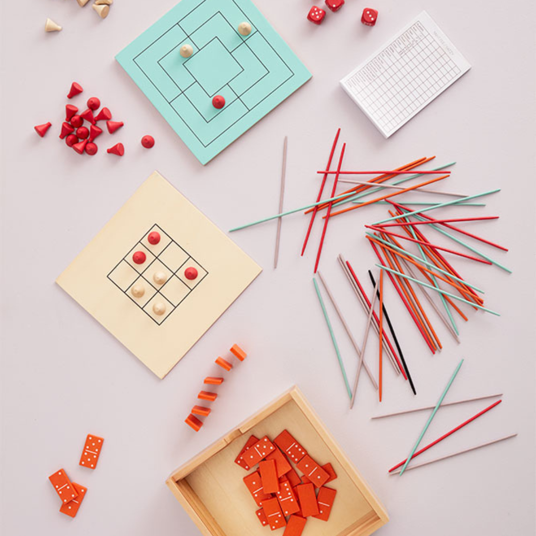 A dobozban található társasjátékok fa elemei a fenntarthatóságot szem előtt tartva FSC-minősítésű fából készülnek. A játékokat 3 éves kortól ajánljuk.