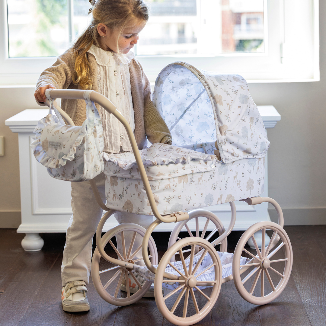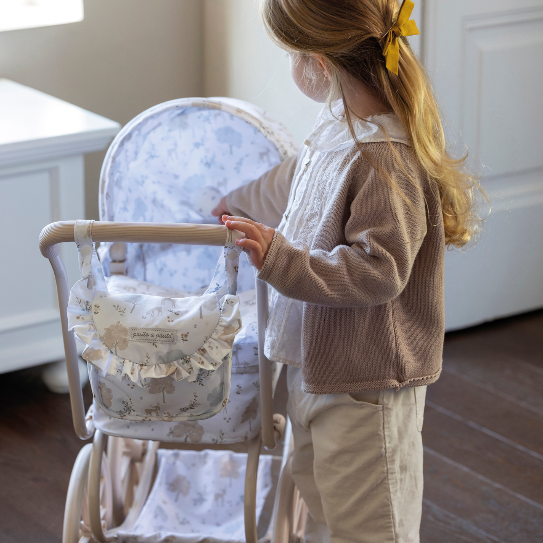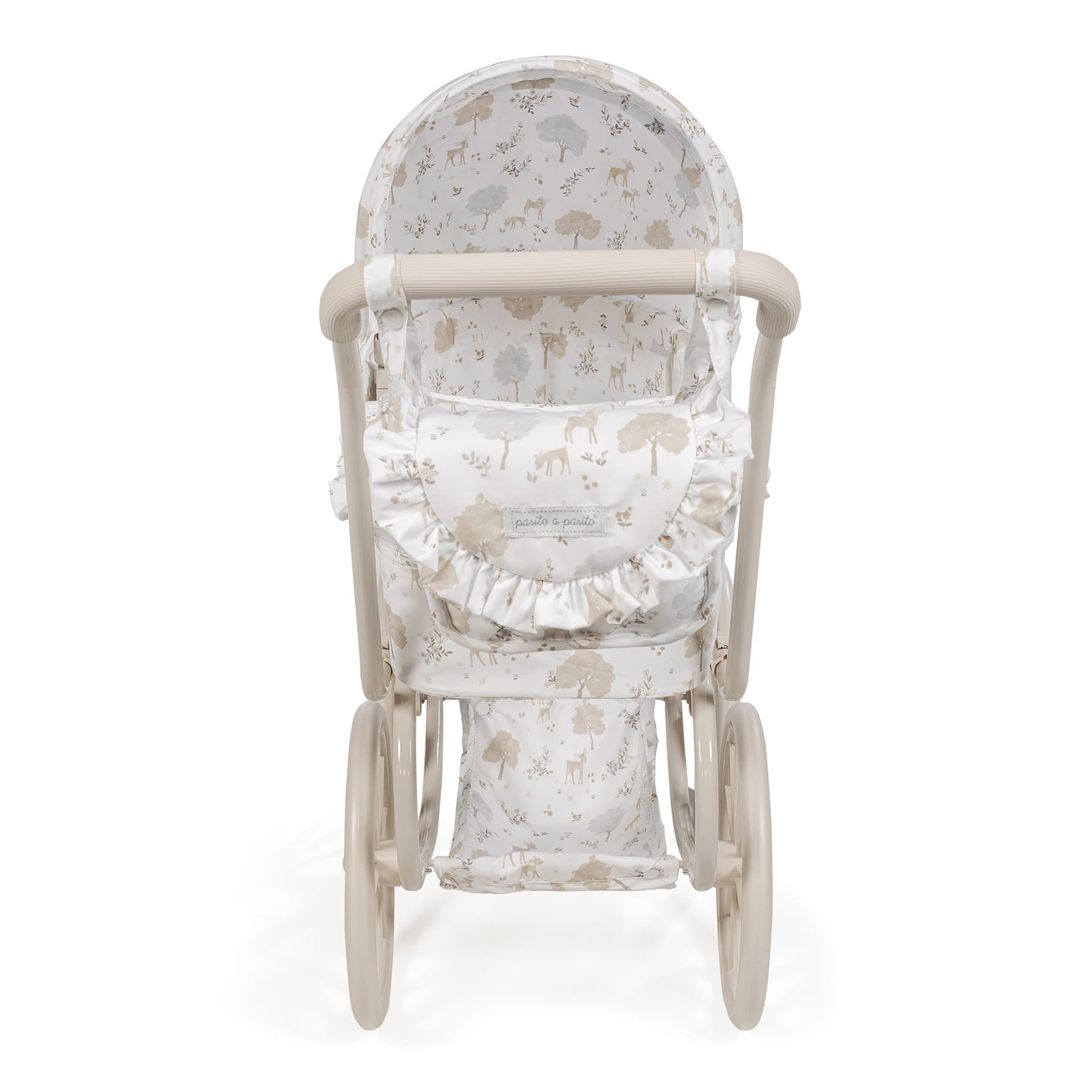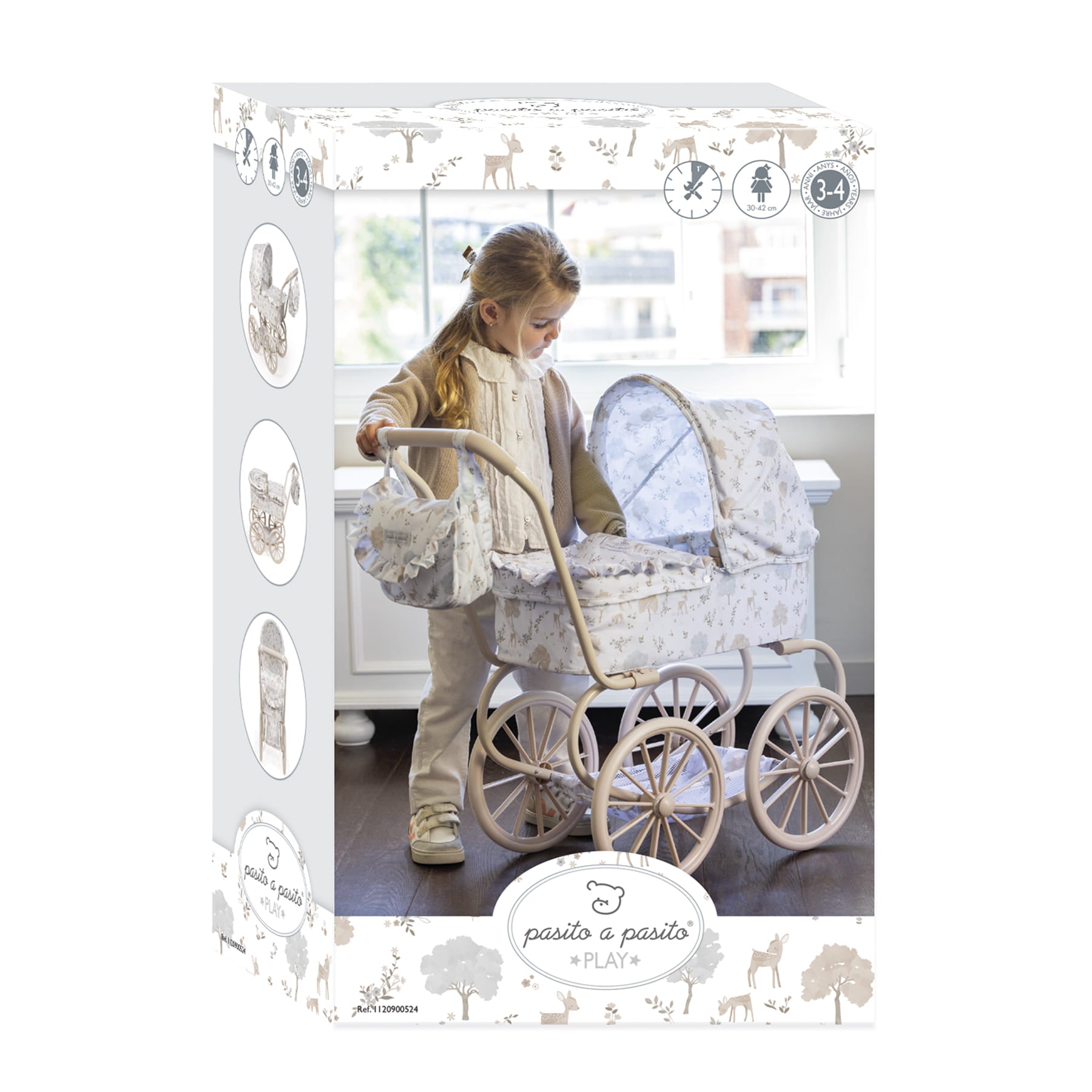 A Pasito a Pasito finom őzike és erdei mintás játék babakocsi igazi álom minden kis babázónak. Klasszikus, vintage forma, és nagy kerekek. A mózes kupolája lehajtható, a fedél levehető, hogy a babakocsizás élménye igazán élvezetes legyen.