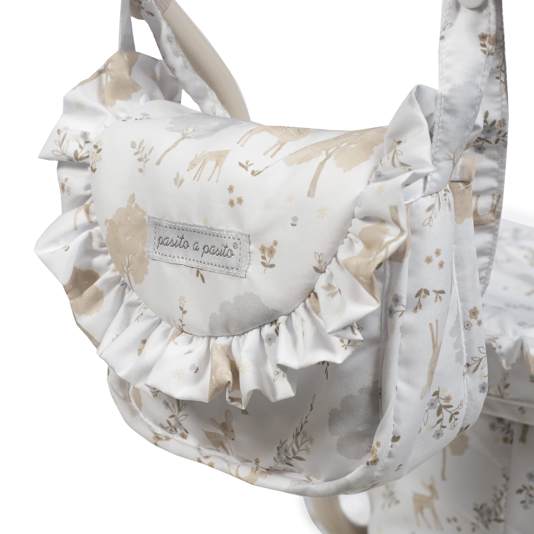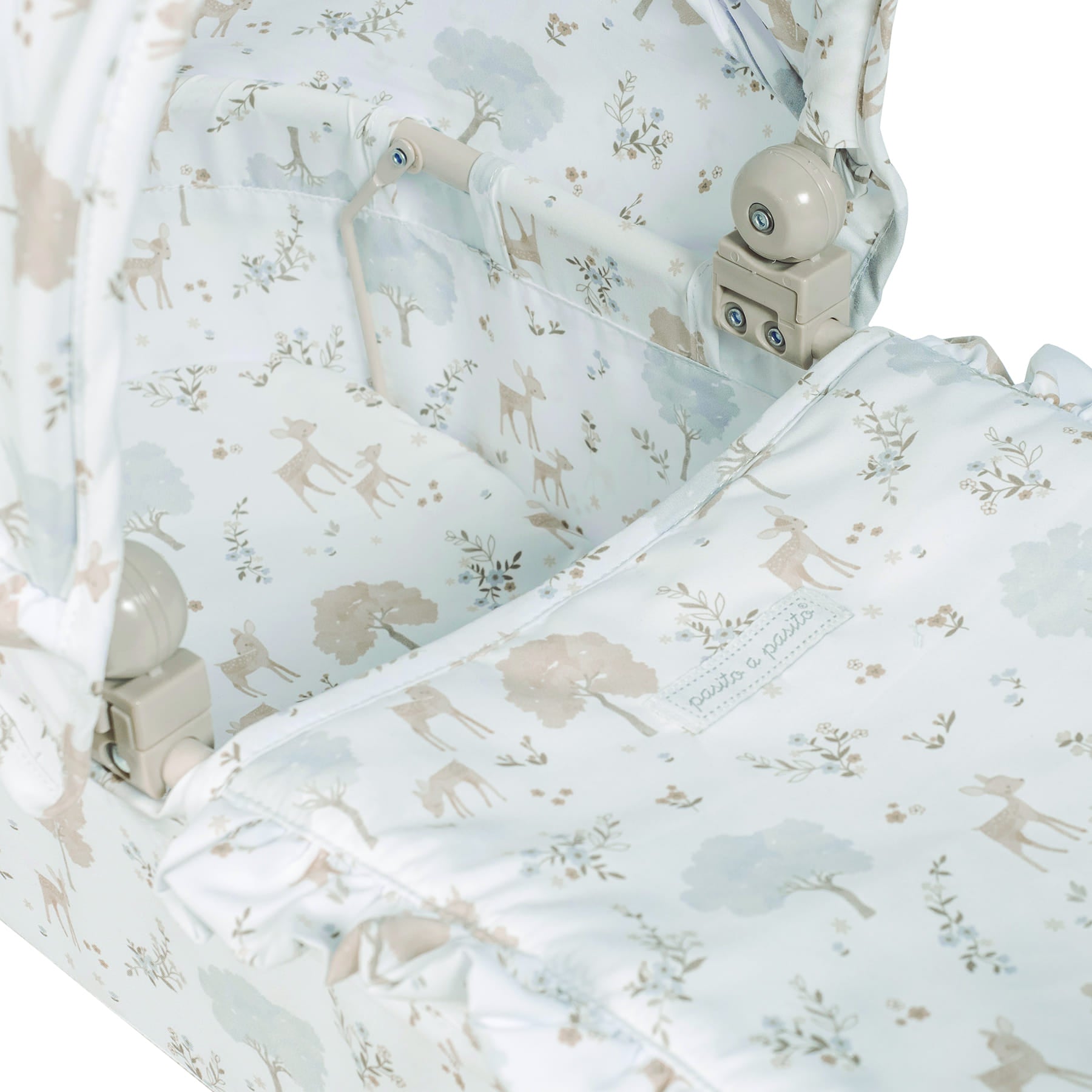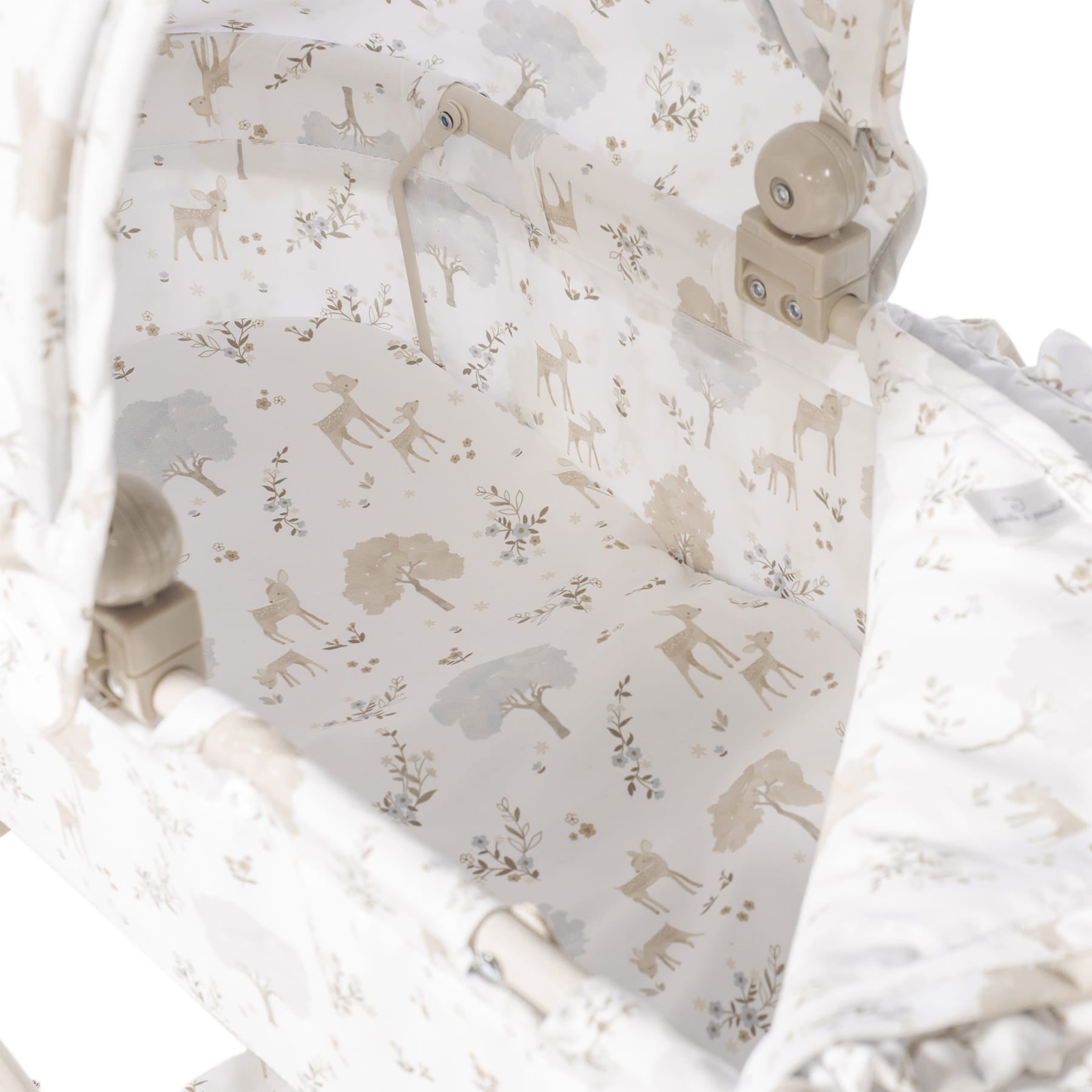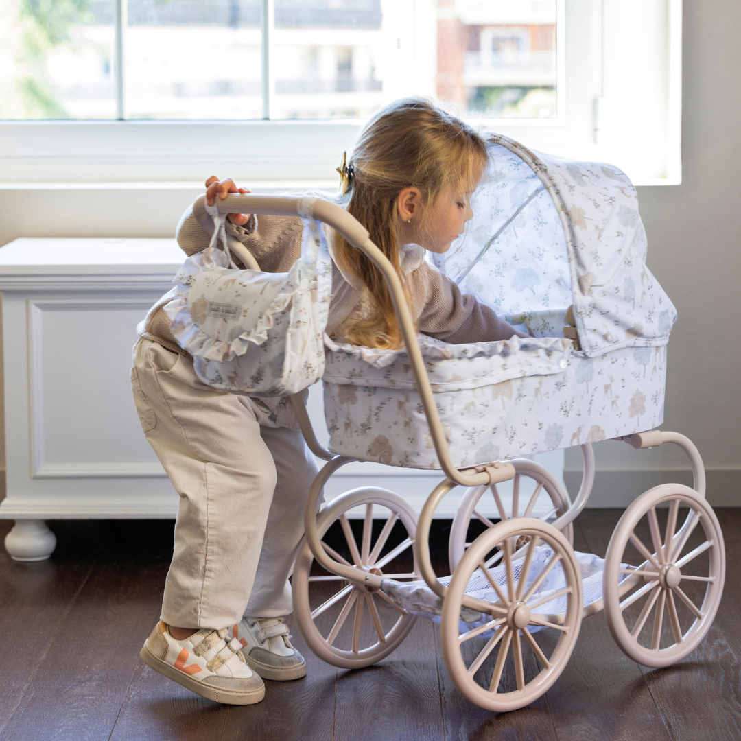 A Pasito a Pasito finom őzike és erdei mintás játék babakocsi igazi álom minden kis babázónak. Klasszikus, vintage forma, és nagy kerekek. A mózes kupolája lehajtható, a fedél levehető, hogy a babakocsizás élménye igazán élvezetes legyen.