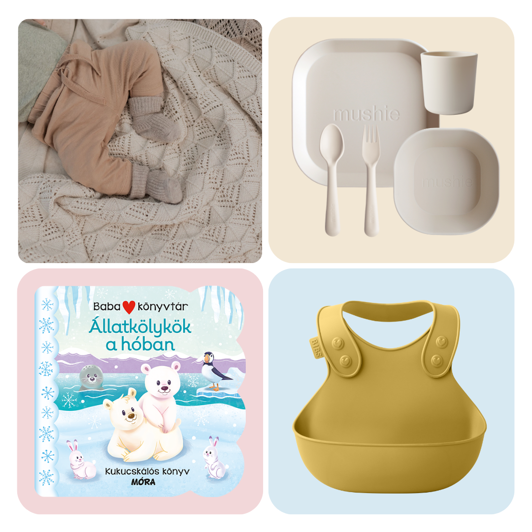 A szeretett Kisbabám csomag különleges kiadása, amit közösen alkottunk meg Dóczi-Horváth Bernadett (Instagram: @dettidu) budapesti logopédussal. Egy olyan csomagot álmodtunk meg, aminek termékei hű társaitok lesznek az első években.