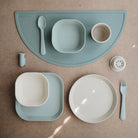 - 1 db Mushie étkészlet (lapostányér, mélytányér, pohár, kanál-villa szett) krémfehér színben