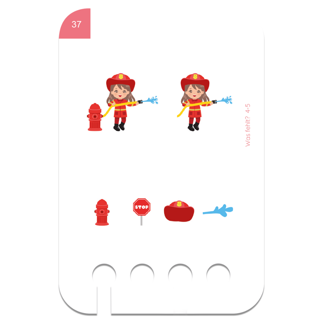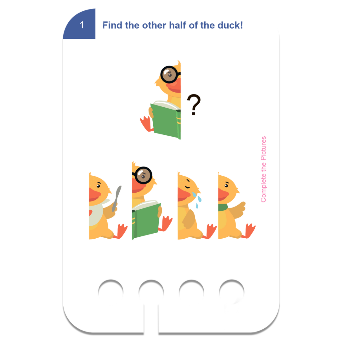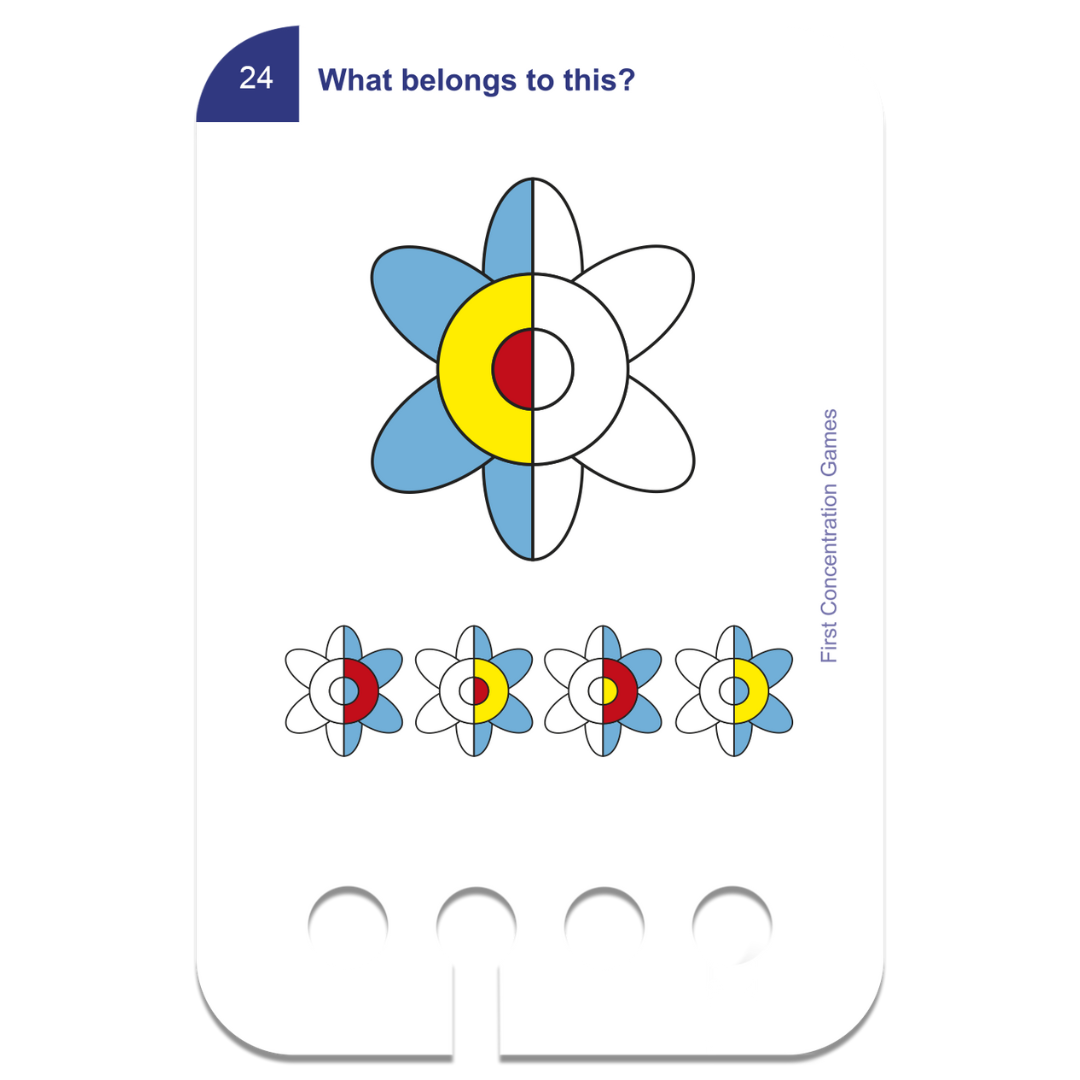 - 6 db kártyacsomag (1 csomagban 24 kártya, összesen 48 kétoldalas feladat): Első koncentrációs feladatok, Párosítós, Egészítsd ki a képet!, Érzékelés, Alakzatok, Mi hiányzik?