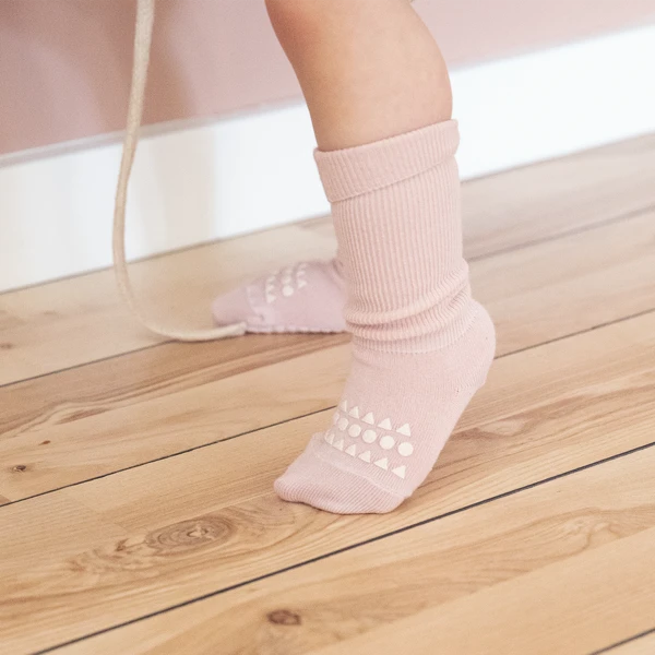A babáknak és totyogóknak tervezett GoBabyGo csúszásgátlós bambusz zokni talpán és lábfején csúszásgátló gumi található, ami biztonságos tapadást biztosít a csúszósabb, sima felületeken.