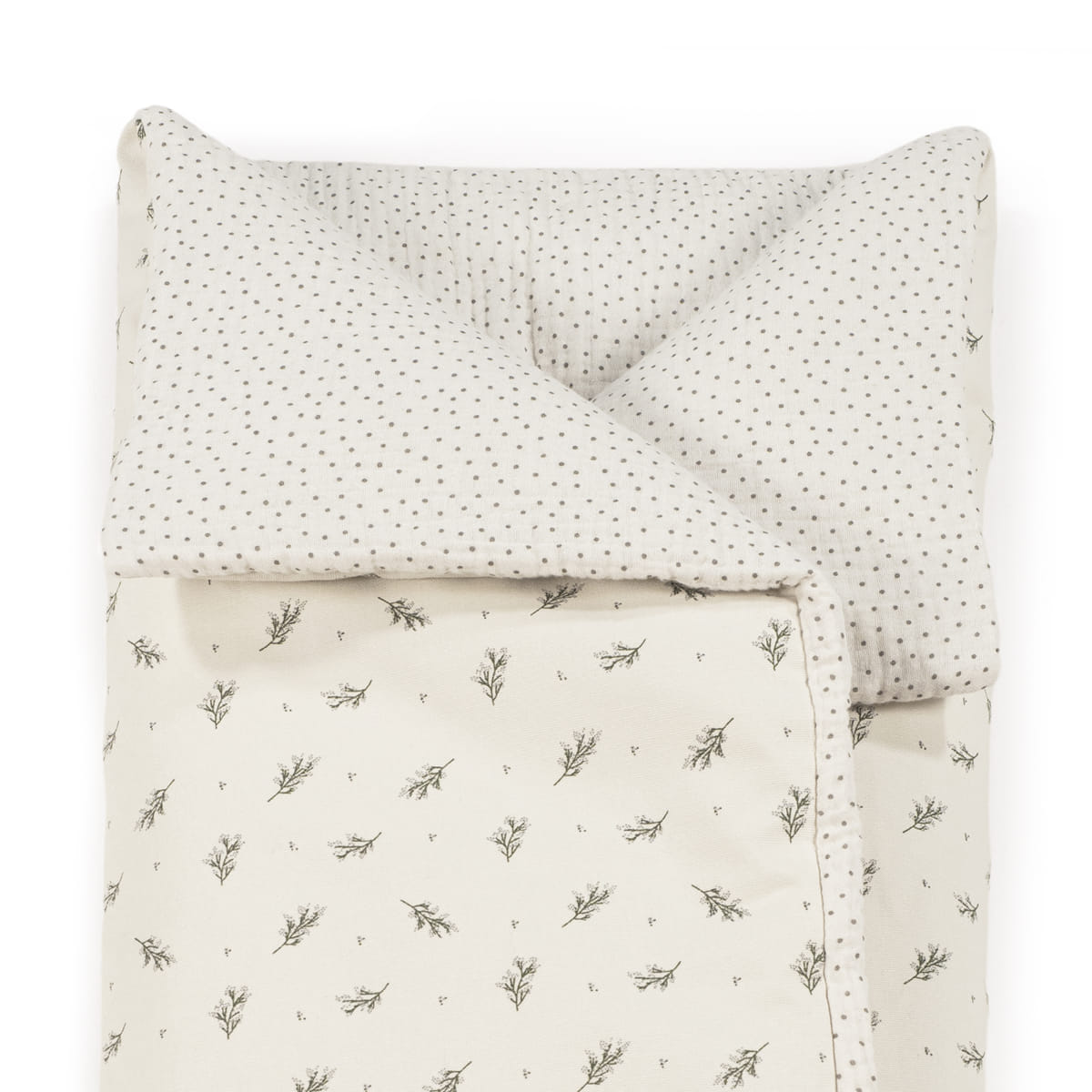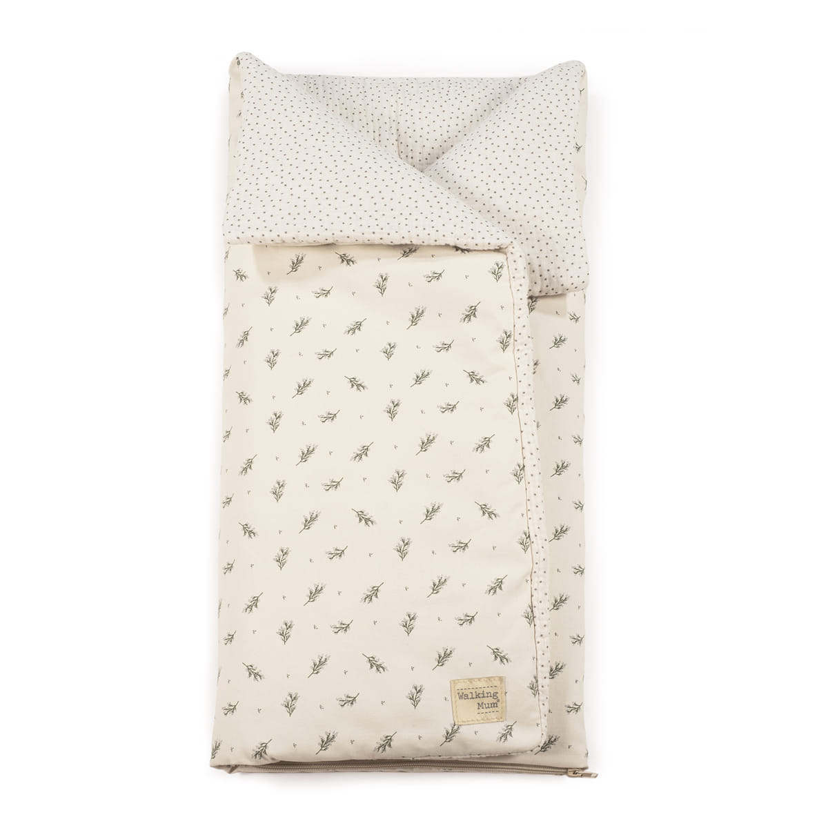 A zöld Mimóza mintás babafészek és takaró ideális választás a baba első napjaira: praktikus, kényelmes és stílusos társ a mindennapokban. Kívül 100% pamutból, belül puha muszlin béléssel készül, amely finoman körülöleli az újszülöttet, megnyugtató melegséget és biztonságérzetet nyújtva számára.