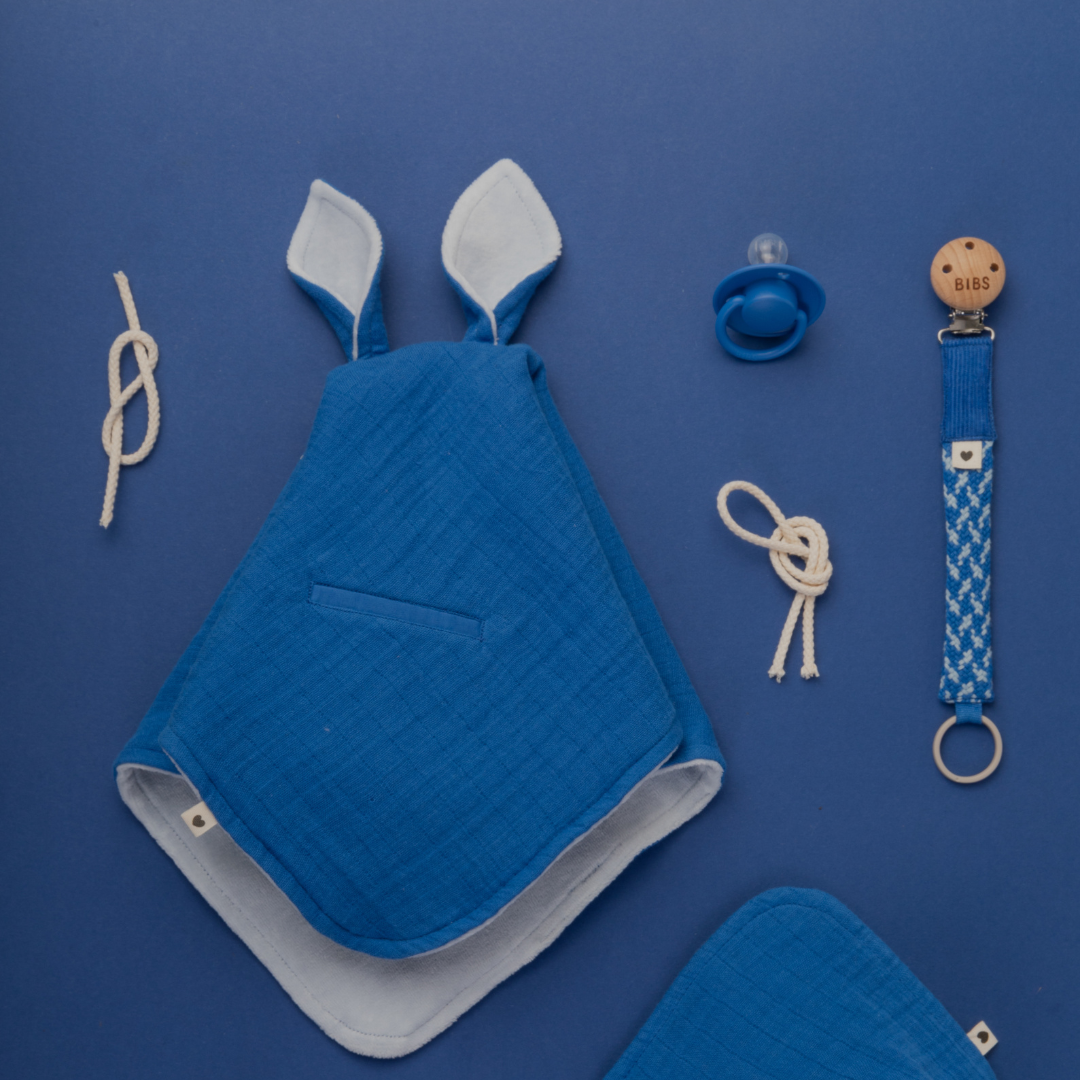 A BIBS szundi kendő 100% GOTS-minősítésű biopamutból és pihe-puha plüss anyagból készül. A búzavirág színű, muszlin anyag kiváló nedvszívó, míg a terepzöld plüss belső réteg lágy puhasága miatt ölelni való.