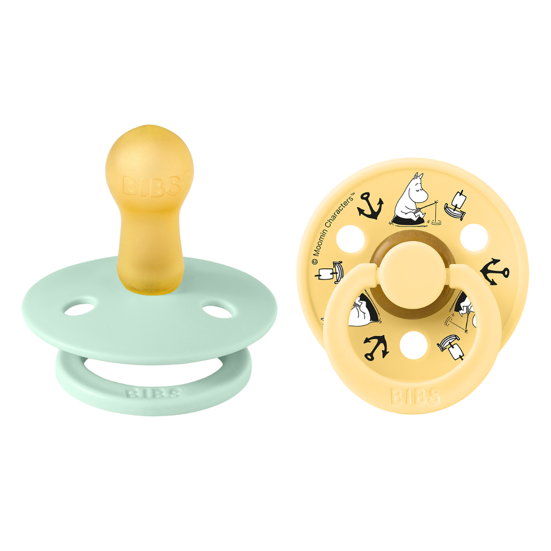 A csomag két megegyező méretű BIBS Colour cumit tartalmaz halványmenta és krémsárga színben, VízpartON mintával. A közkedvelt dizájnt a Muminok kedves világa teszi igazán egyedivé, így a mindennapi használat is mesés élmény lehet.