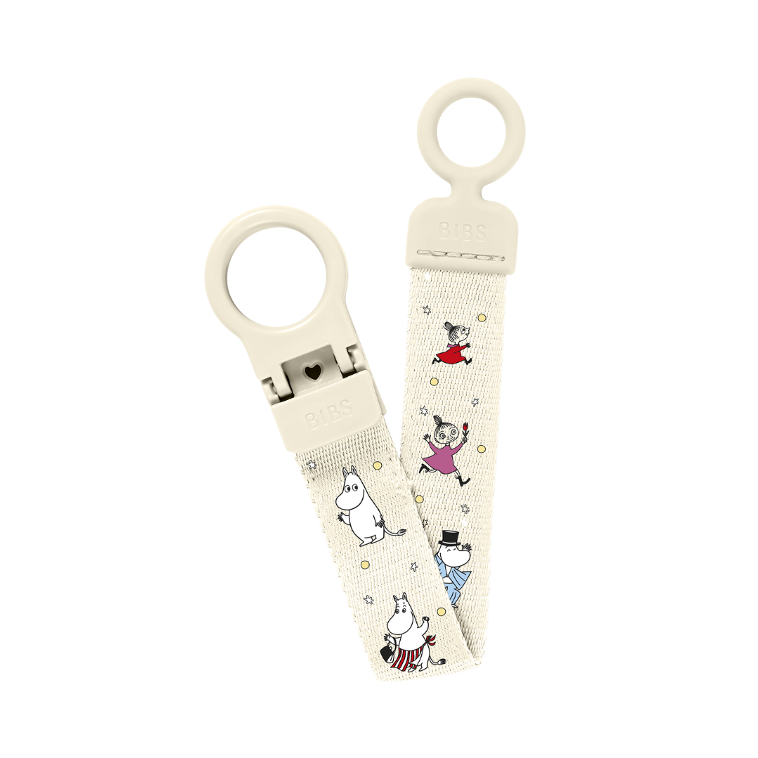 BIBS egykezes cumilánc Muminok mintával, krémfehér színben