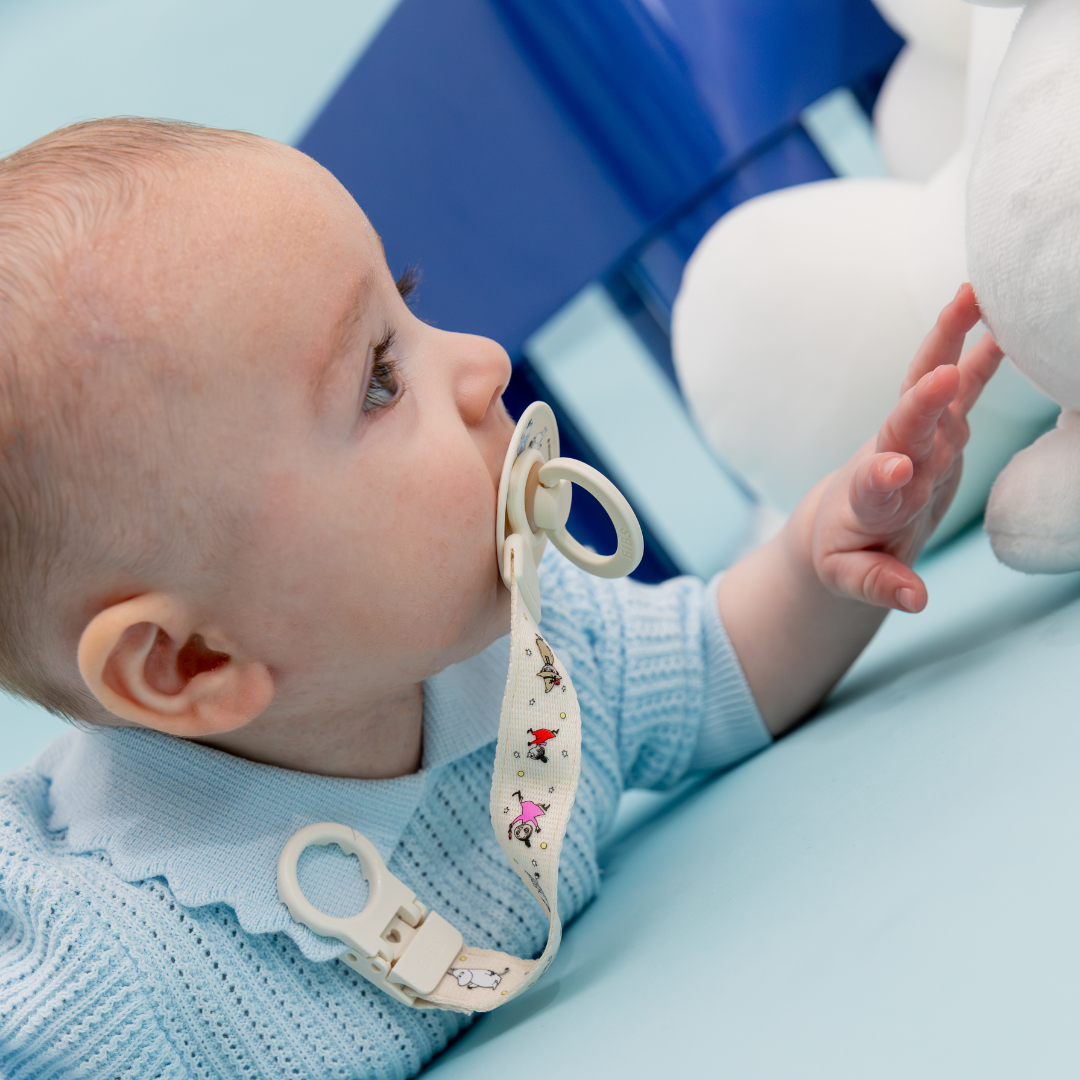 Az egykezes csatolás gyors és kényelmes, így pillanatok alatt biztonságosan rögzíthető. A vékony, letisztult forma nem zavarja a babát, a rugalmas szilikon gyűrű pedig minden BIBS cumival kompatibilis.