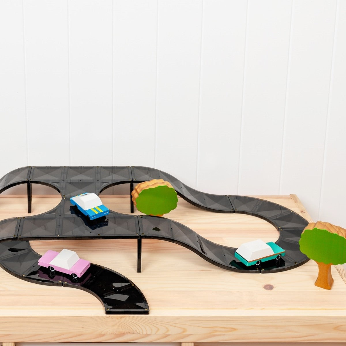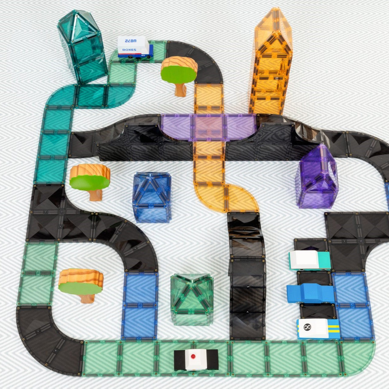 A CONNETIX mágneses építőjáték útépítős csomagjával új szintre lép a jármáves, városépítős játék! A különböző rámpák, kanyarok és kereszteződések segítségével igazi forgalmas város, autópálya vagy kalandos pályarendszer építhető össze.