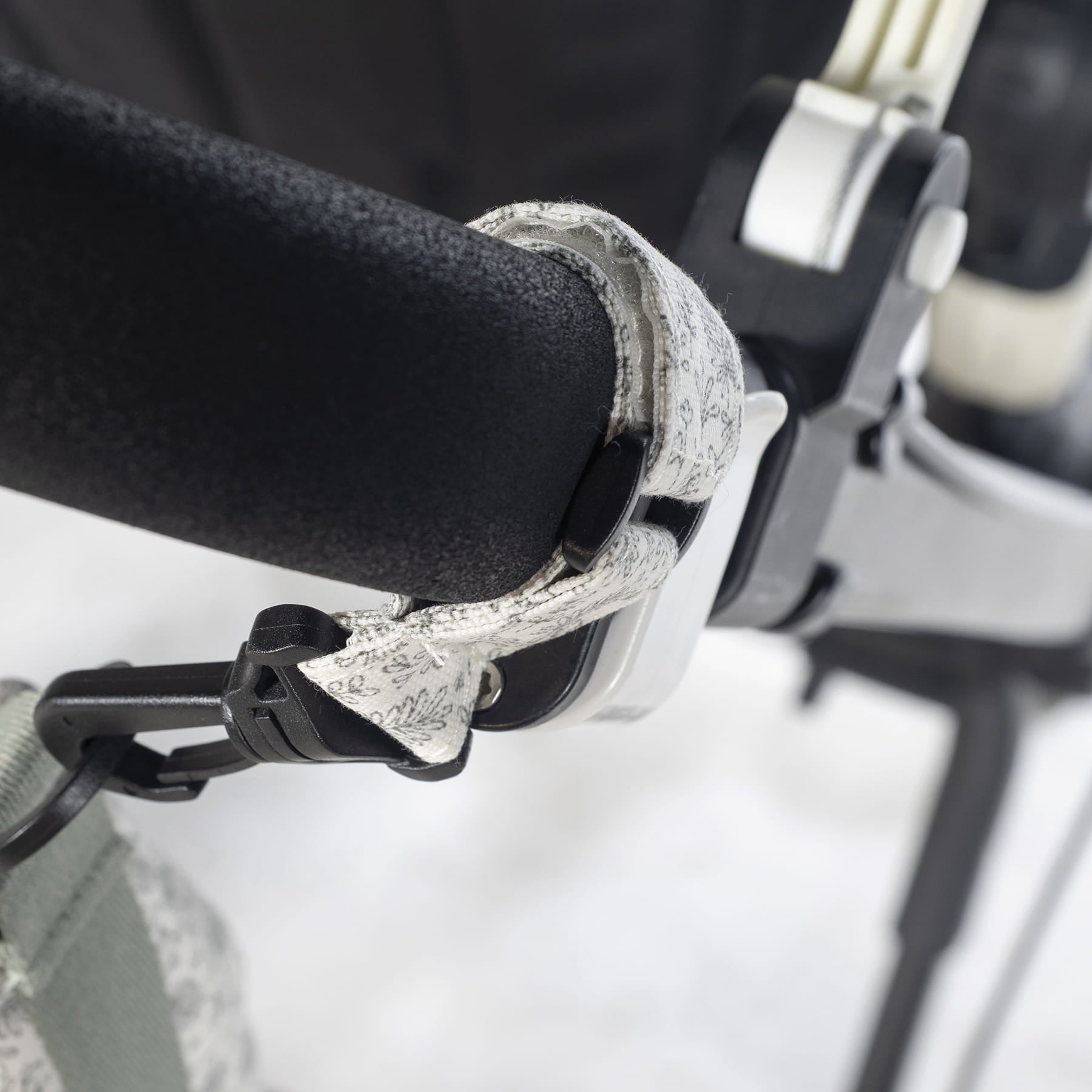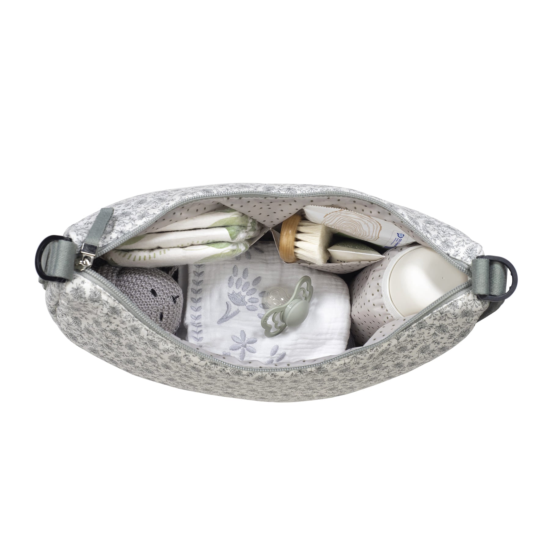 A könnyű pelenkázó táska univerzális, lecsatolható babakocsi rögzítő pántokkal rendelkezik, továbbá hosszú, állítható fülének köszönhetően egyszerűen vállra is vetheted.