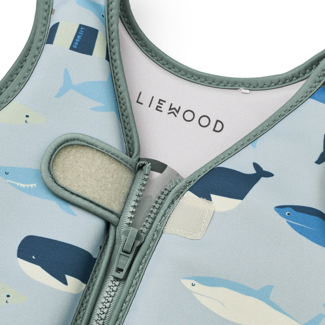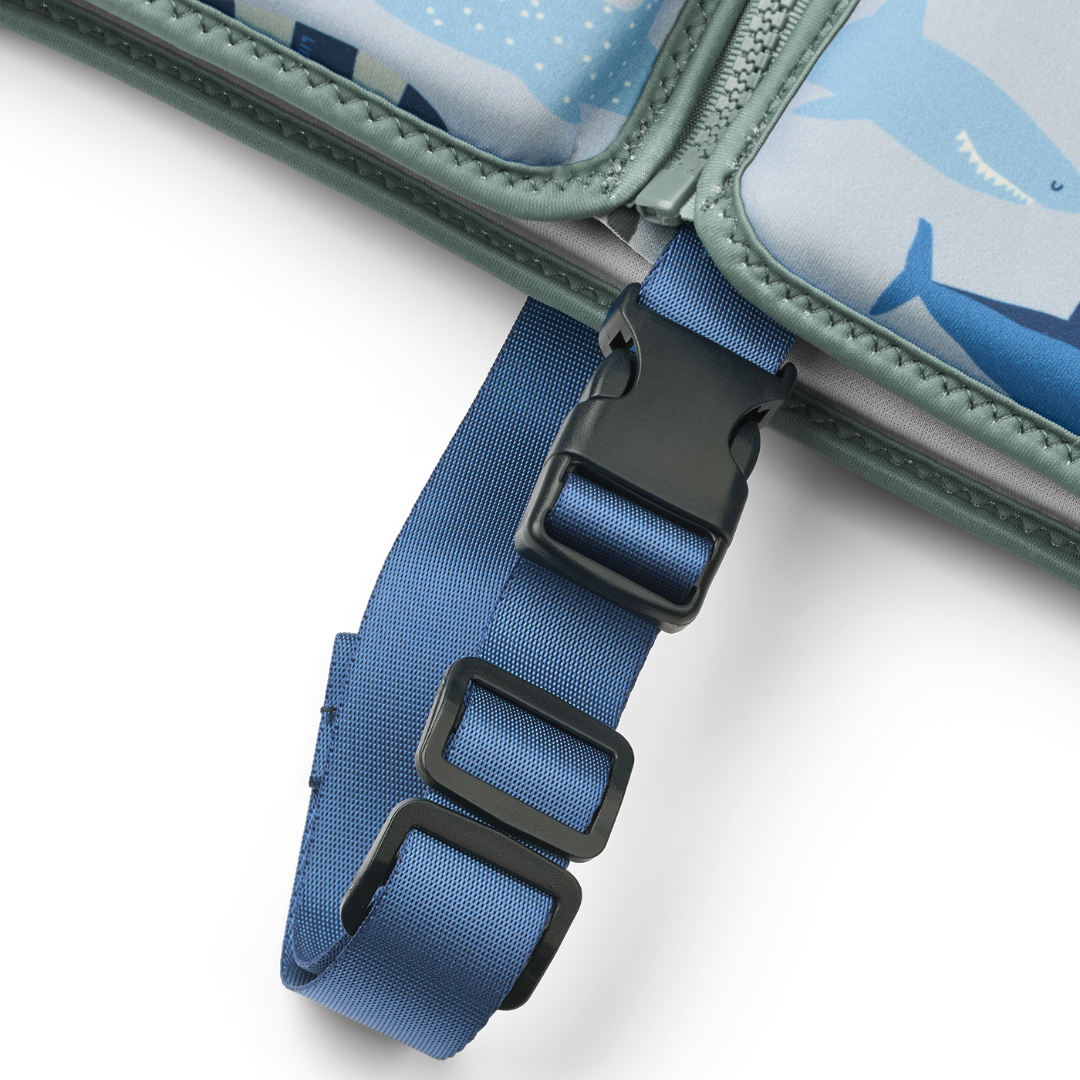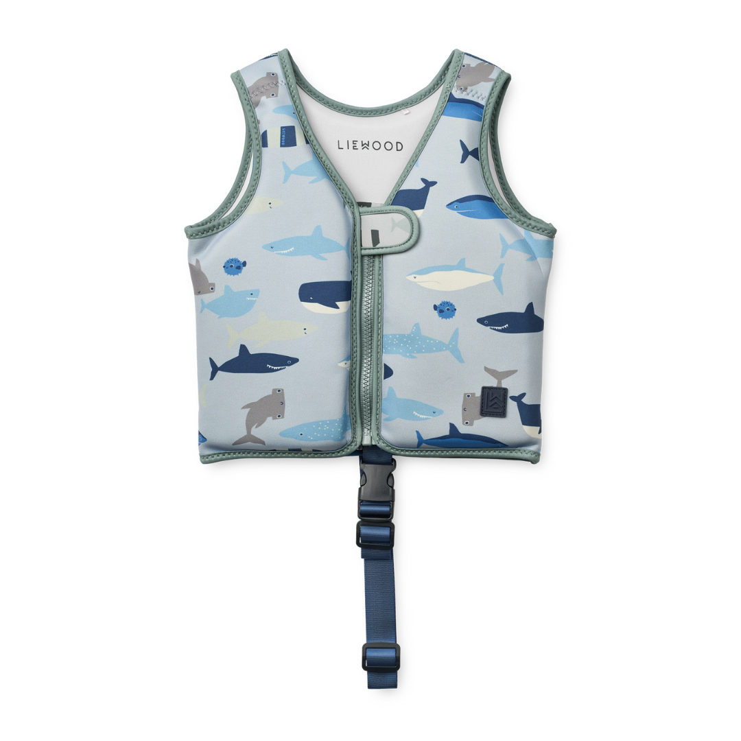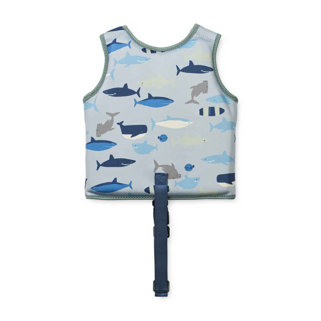 Vagány cápeti mintás Liewood úszómellény könnyű és ellenálló neoprén anyagból. A kellemes tapintás és tökéletes illeszkedés garantálja, hogy a gyerekek önfeledten élvezhessék a vízben töltött időt.