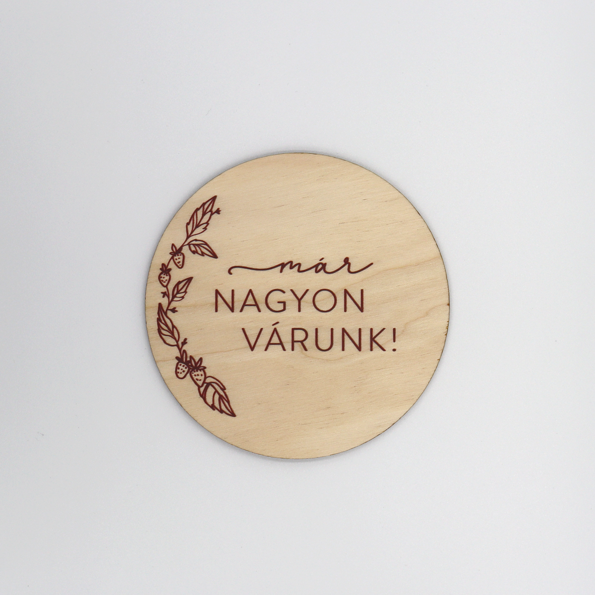 Babafotózási kellék - "már nagyon várunk" fa korong