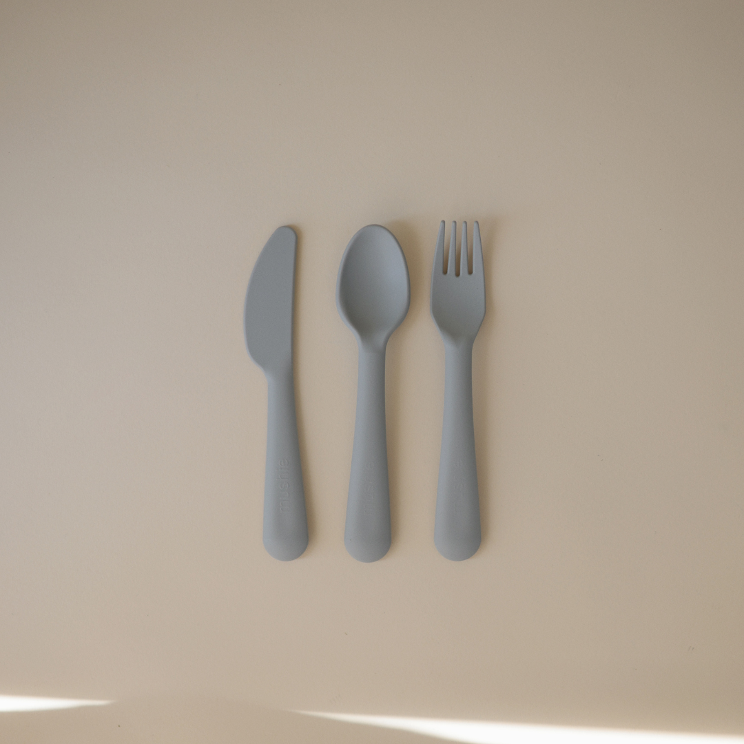 A Mushie műanyag evőeszköz szett visszafogott, alkonyat színben és minimalista formavilágával tökéletesen illeszkedik a mindennapokba. Kifejezetten kis kezekhez tervezték, hogy támogassa az önálló étkezést és növelje a gyermekek magabiztosságát az étkezések során.
