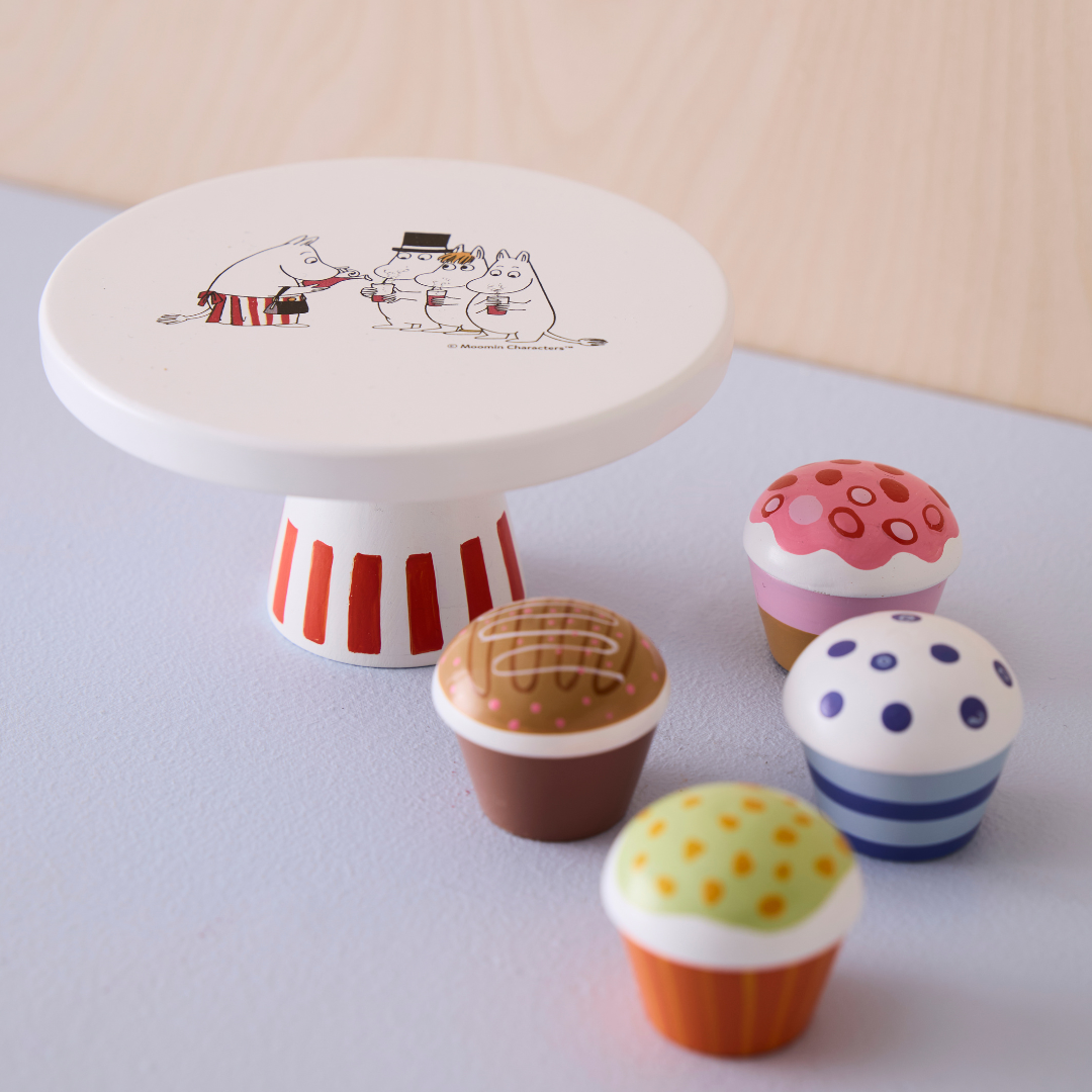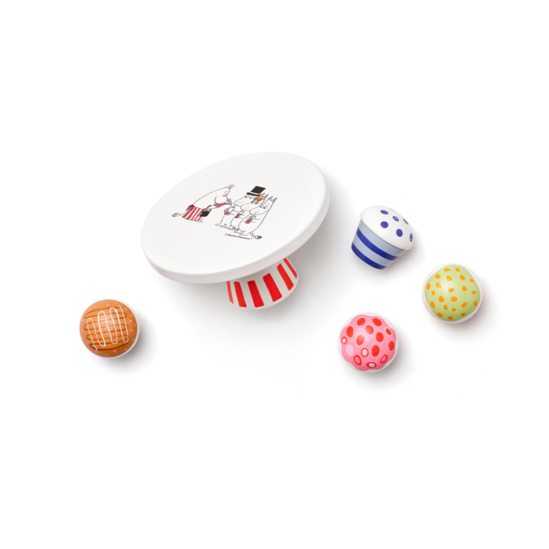 A Mumin sütik állvánnyal szett igazi csemege minden kis cukrász számára! A készlet négy különböző sütit tartalmaz - eper, pisztácia, csokoládé és egyedi ízesítés - valamint egy mutatós állványt, amelyen szépen tálalhatók a finomságok.