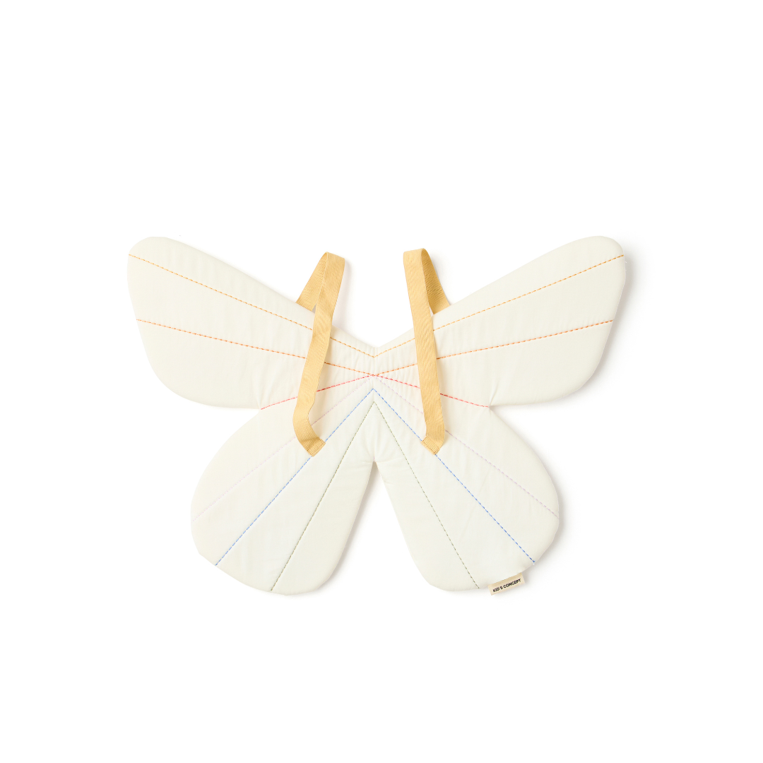 A pillangó szárny jelmez puha, párnázott kialakítása kényelmes viseletet biztosít, miközben szépen megtartja formáját. A hímzett részletek élethűvé és különlegessé teszik a megjelenést. Az elasztikus vállpántoknak köszönhetően a gyerekek önállóan is könnyedén fel- és levehetik a szárnyakat, támogatva az önálló játékot.