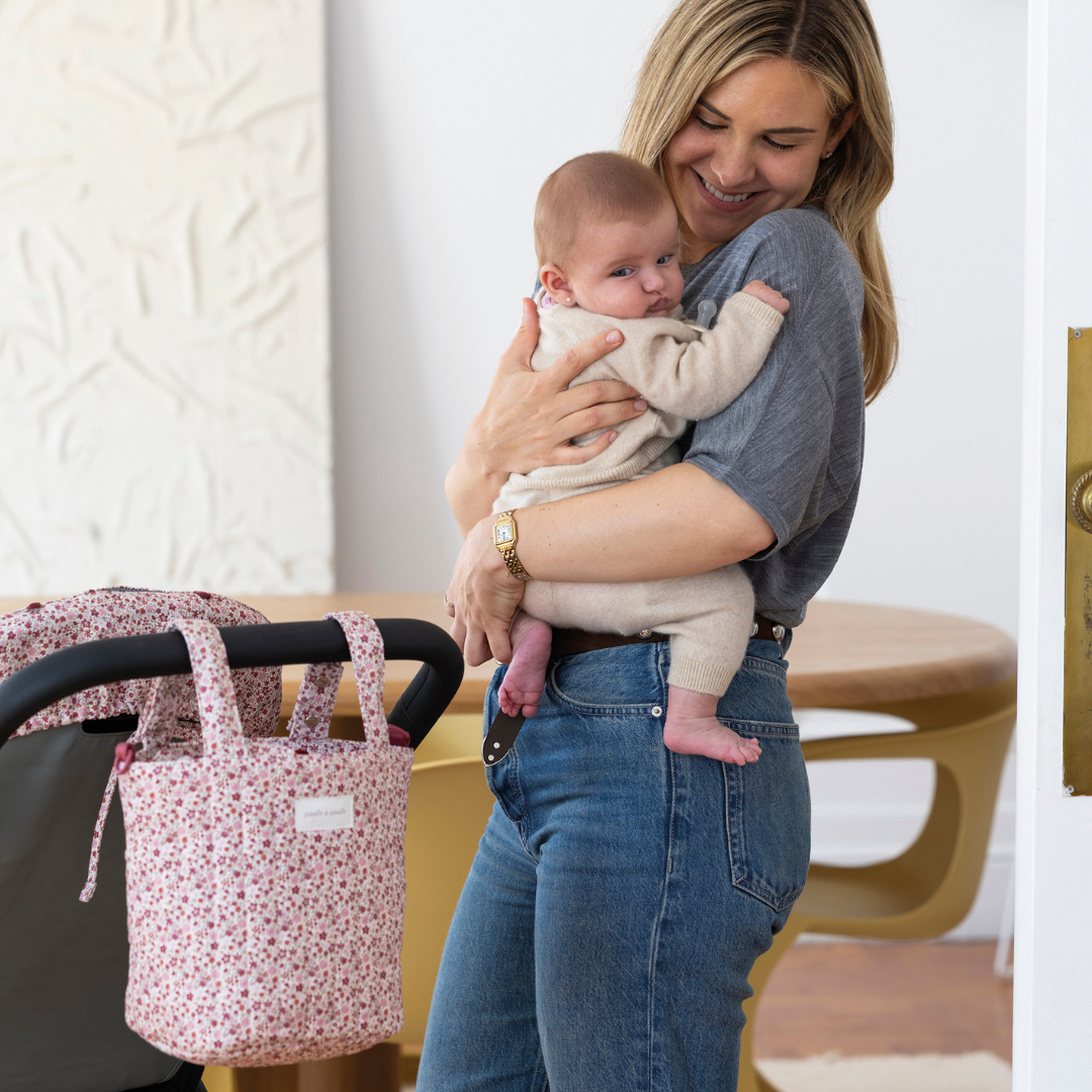 A bájos virágmintás kézitáska a stílus és funkcionalitás tökéletes találkozása. A romantikus Cherry táska két rövidebb fülével egyszerűen rögzíthető babakocsira, illetve hosszú, lecsatolható pántjával akár válltáskaként is használható.