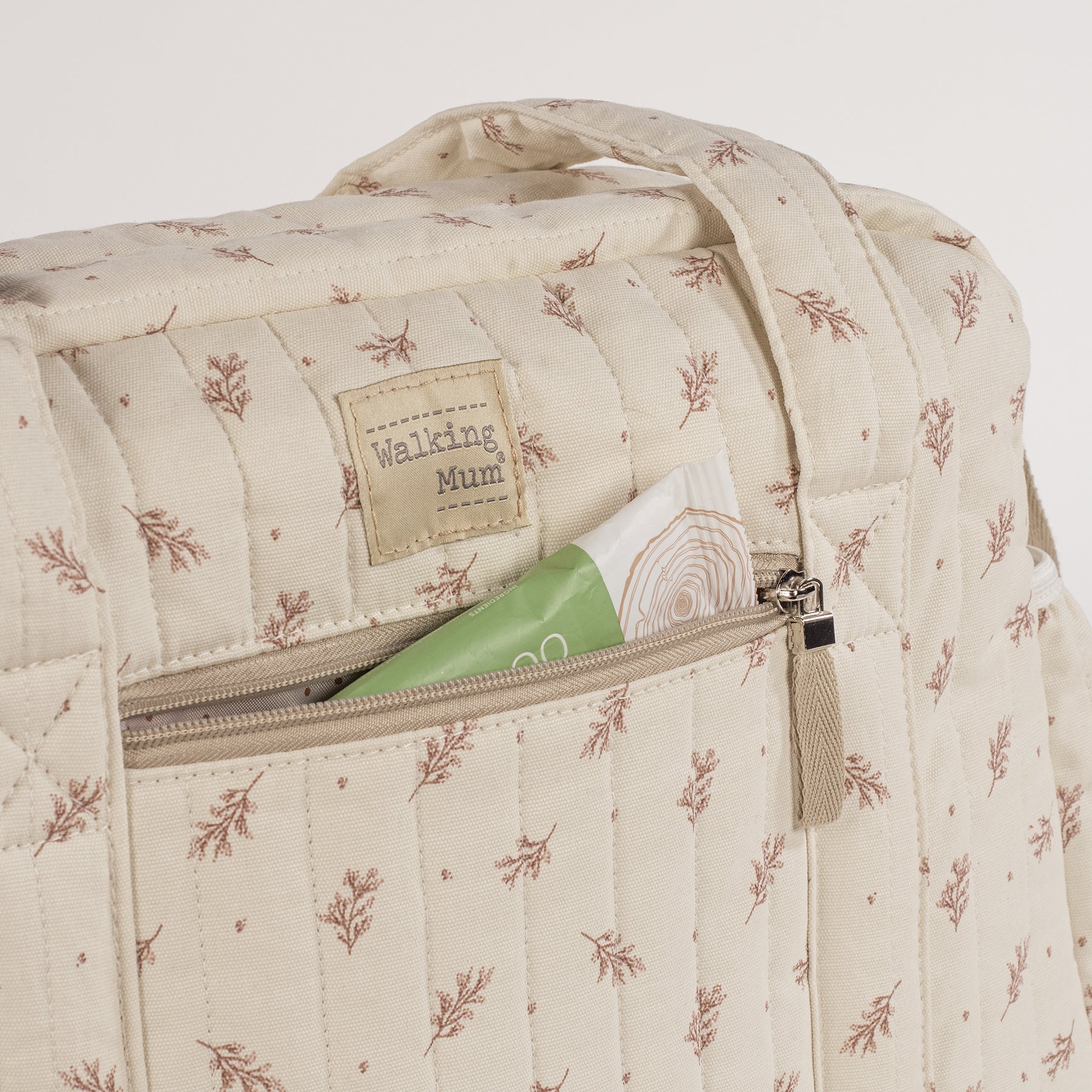 Pamut anyaga speciális kezelés által vízálló, így egyszerűen tisztítható. A Walking Mum márka táskái a legjobb minőségű anyagokból készülnek, azofestéltől, valamint minden, a baba egészségére káros anyagoktól mentesek.