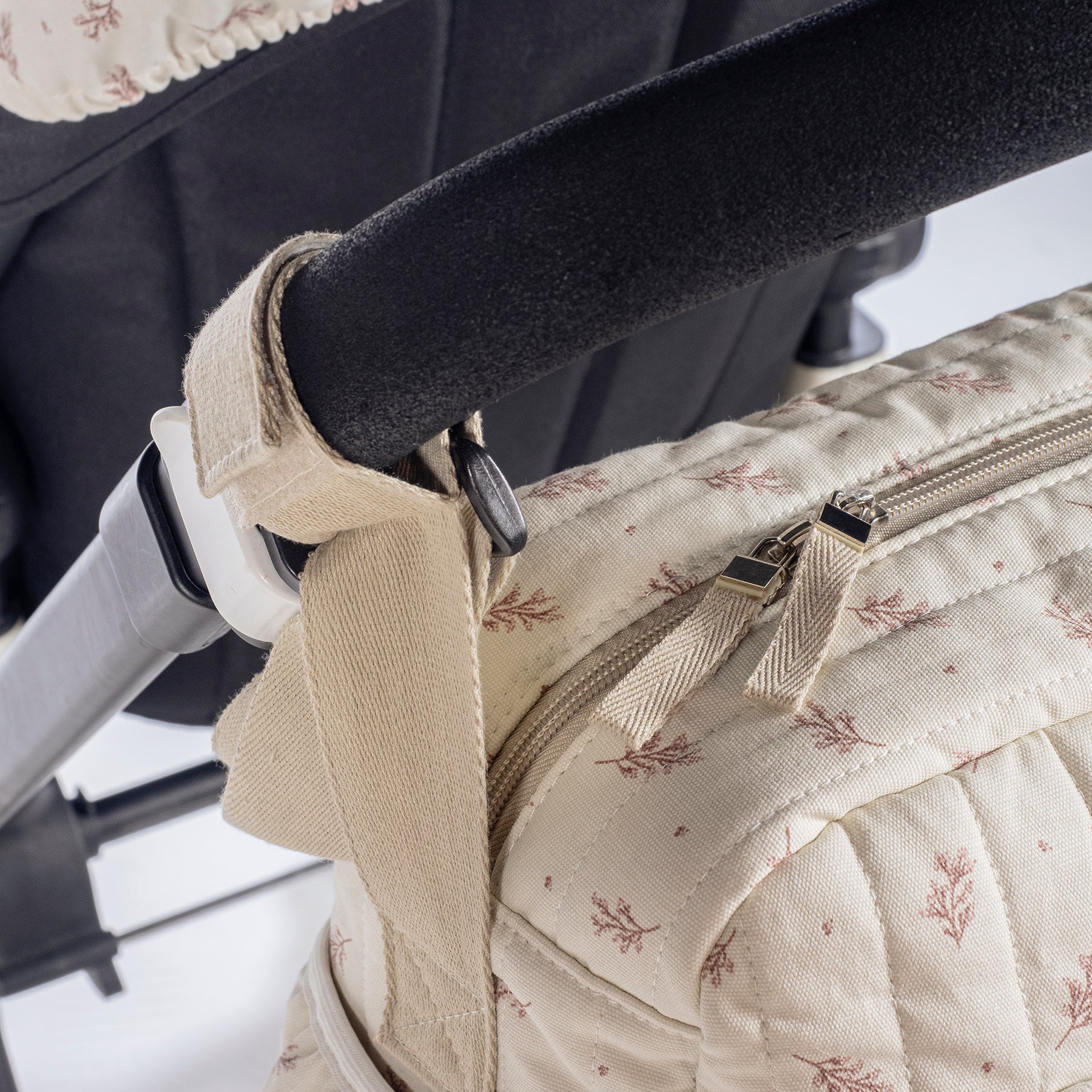 Bármely babakocsira könnyen rögzíthető, illetve két rövidebb fülével könnyen kézbe veheted, hosszú fülének köszönhetően vállra is veheted.