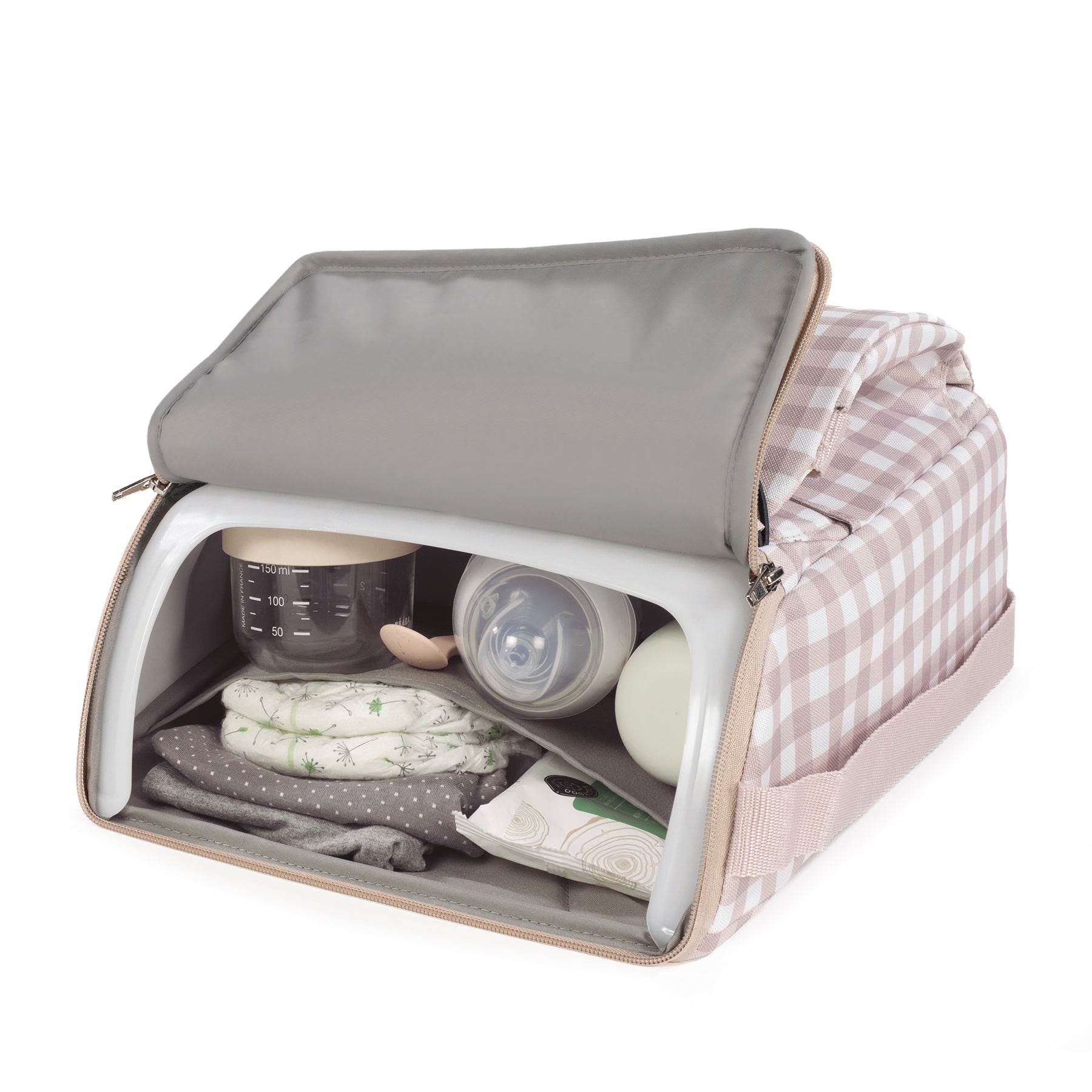 Strapabíró és nagy kapacitású tárolórekesszel rendelkezik, ami tökéletes az evőeszközök, kedvenc étkészlet, törlőkendők és pelenka tárolósára. Könnyen tisztítható: a huzata levehető, mosógépben mosható.