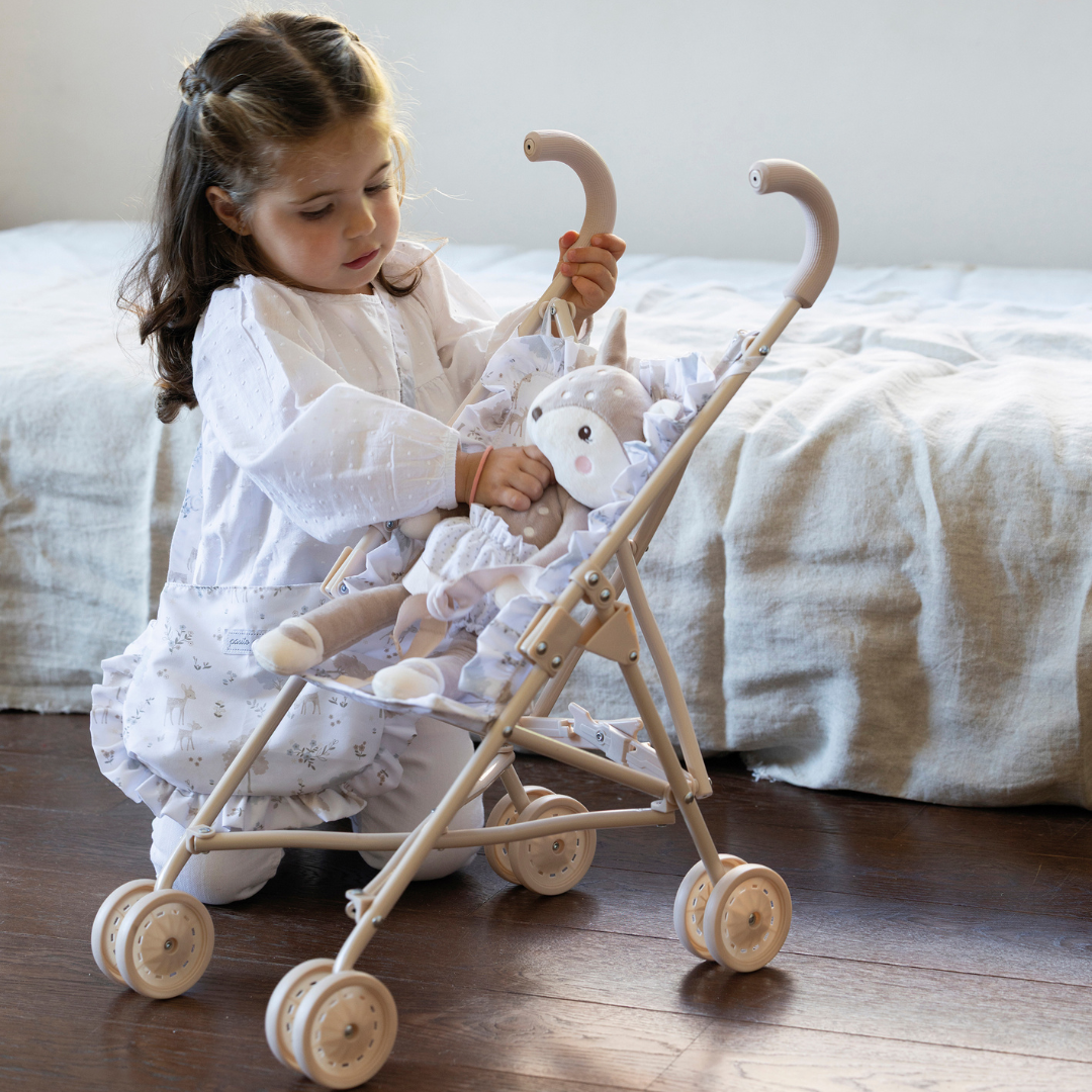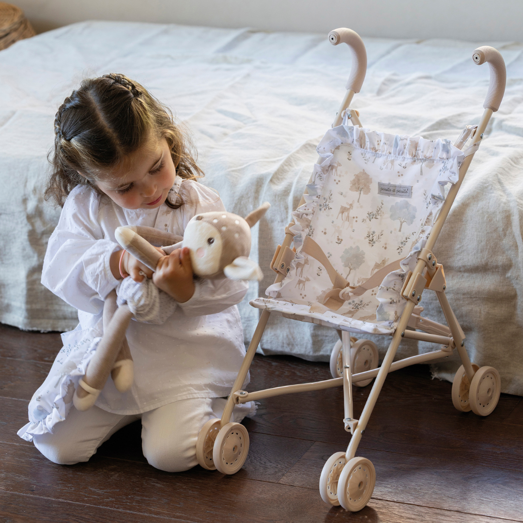 A Pasito a Pasito őzike mintás összecsukható játék babakocsi tökéletes választás minden kisgyerek számára, aki szívesen gondoskodik kedvenc babájáról. A bézs árnyalatokban pompázó finom minta elegáns, mégis játékos hangulatot ad a kiegészítőnek.