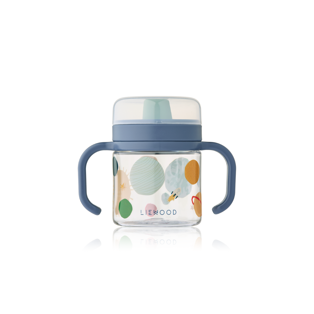 A Liewood Kylo tritán, univerzum mintás, cseppmentes tanulópohárral a kicsik biztonságosan és egyszerűen gyakorolhatják kedvenc italuk kortyolgatását. A tanulópohár két fogantyújának köszönhetően a pohár könnyen illeszkedik a kicsi kezekbe. A puha szilikon tető kíméletes az érzékeny ínyhez, a szívókában található egyedi membrán pedig elősegíti a levegőáramlást ivás közben.