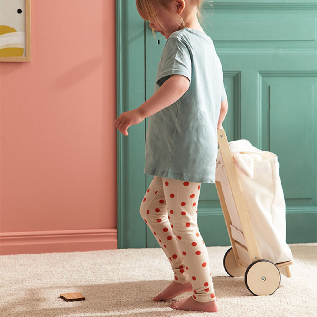 A gumicsíkos kerekek halkan gurulnak és nem hagynak nyomot a padlón, így bent is bármikor elindulhat a bevásárló körút. A kocsiba a gyerekek kedvenc játékélelmiszerei, plüssök vagy kincsek is könnyedén beleférnek.