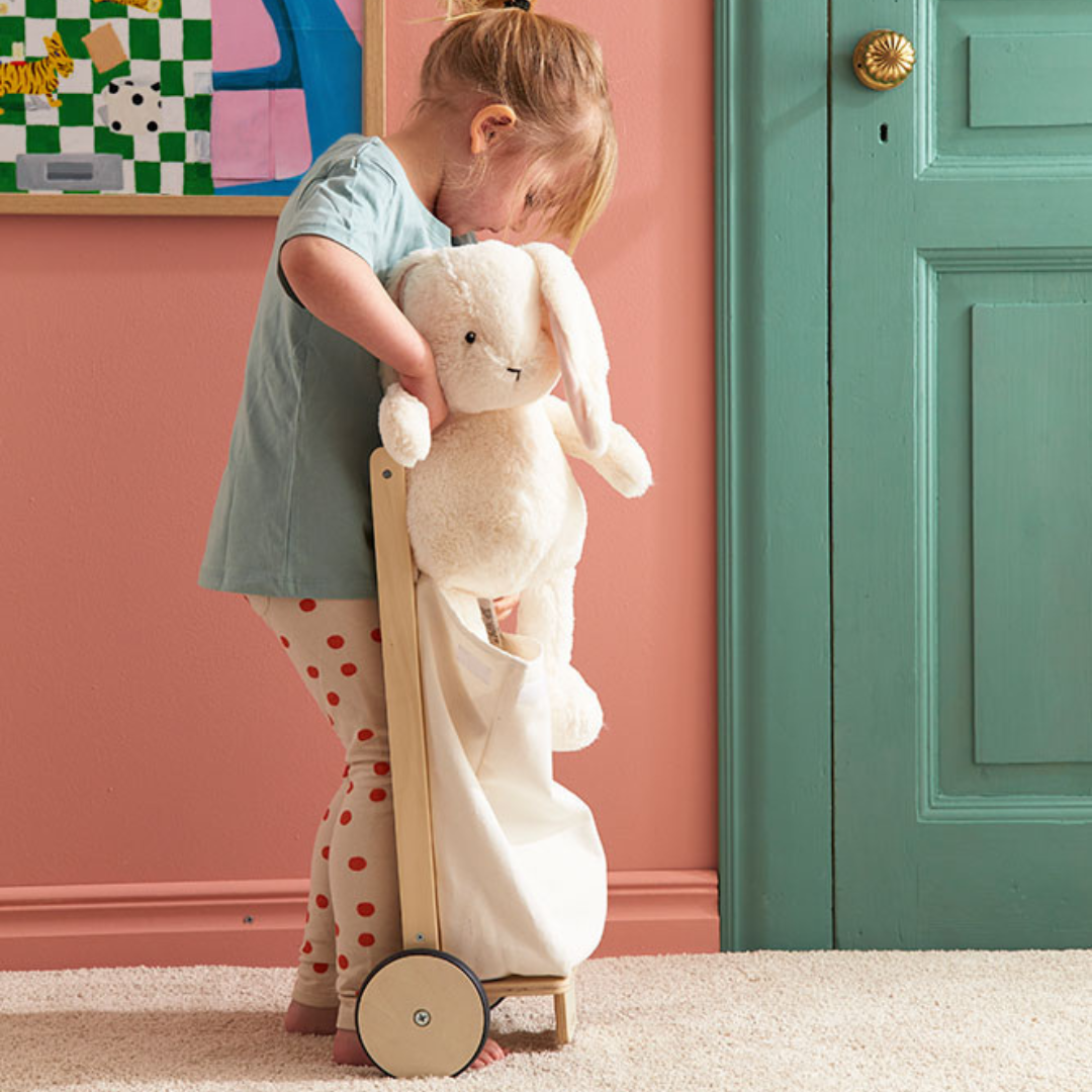 Ez a gyerek bevásárlókocsi nemcsak szórakoztató, hanem környezetbarát alternatíva a műanyag szatyrok helyett, amely támogatja a szerepjátékot és a felelősségtudat fejlődését.