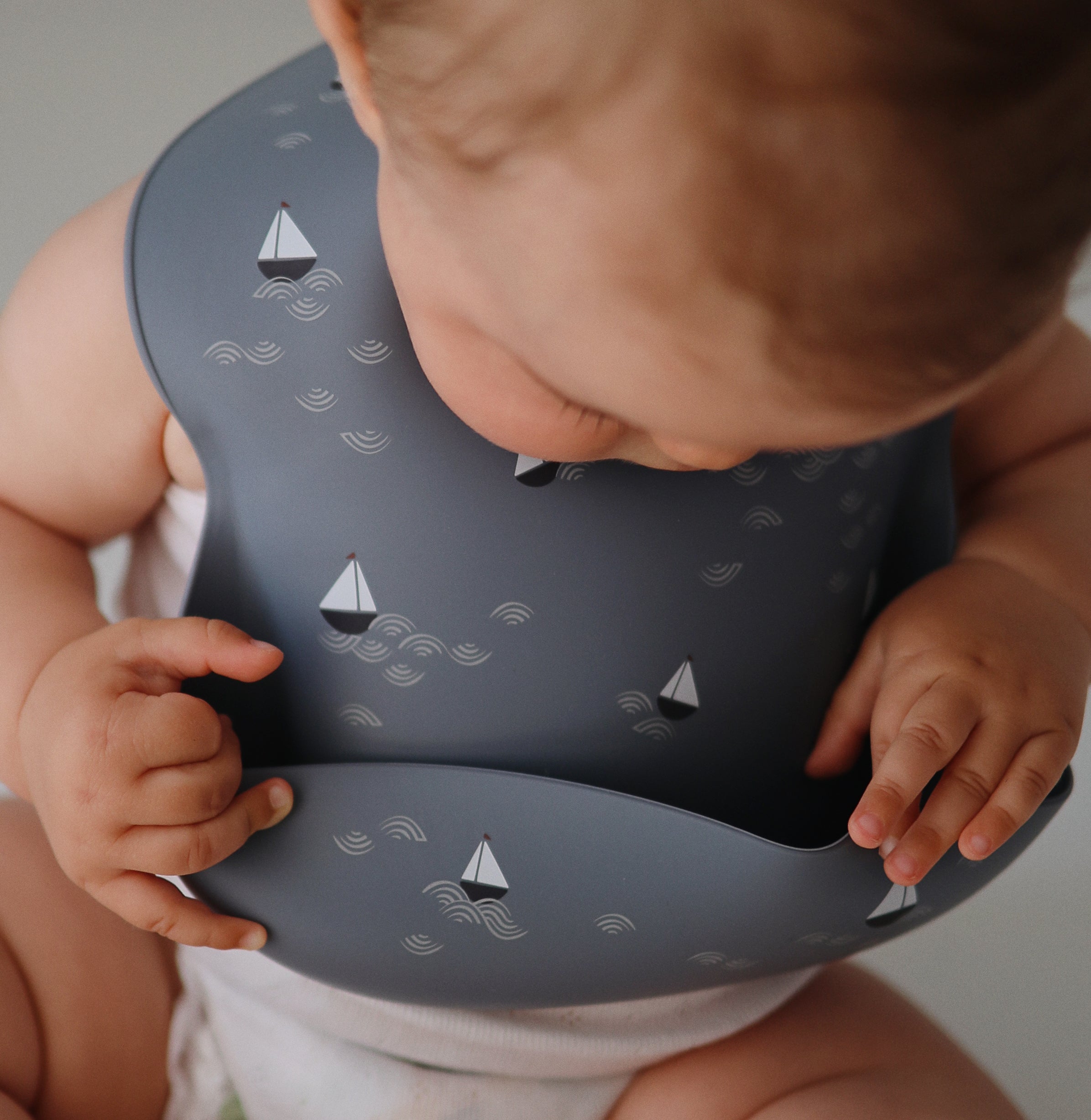 A hajós előke mély elülső zsebe biztosítja a tiszta és takarításmentes ebédidőt. Vízálló, így könnyen tisztán tartható.