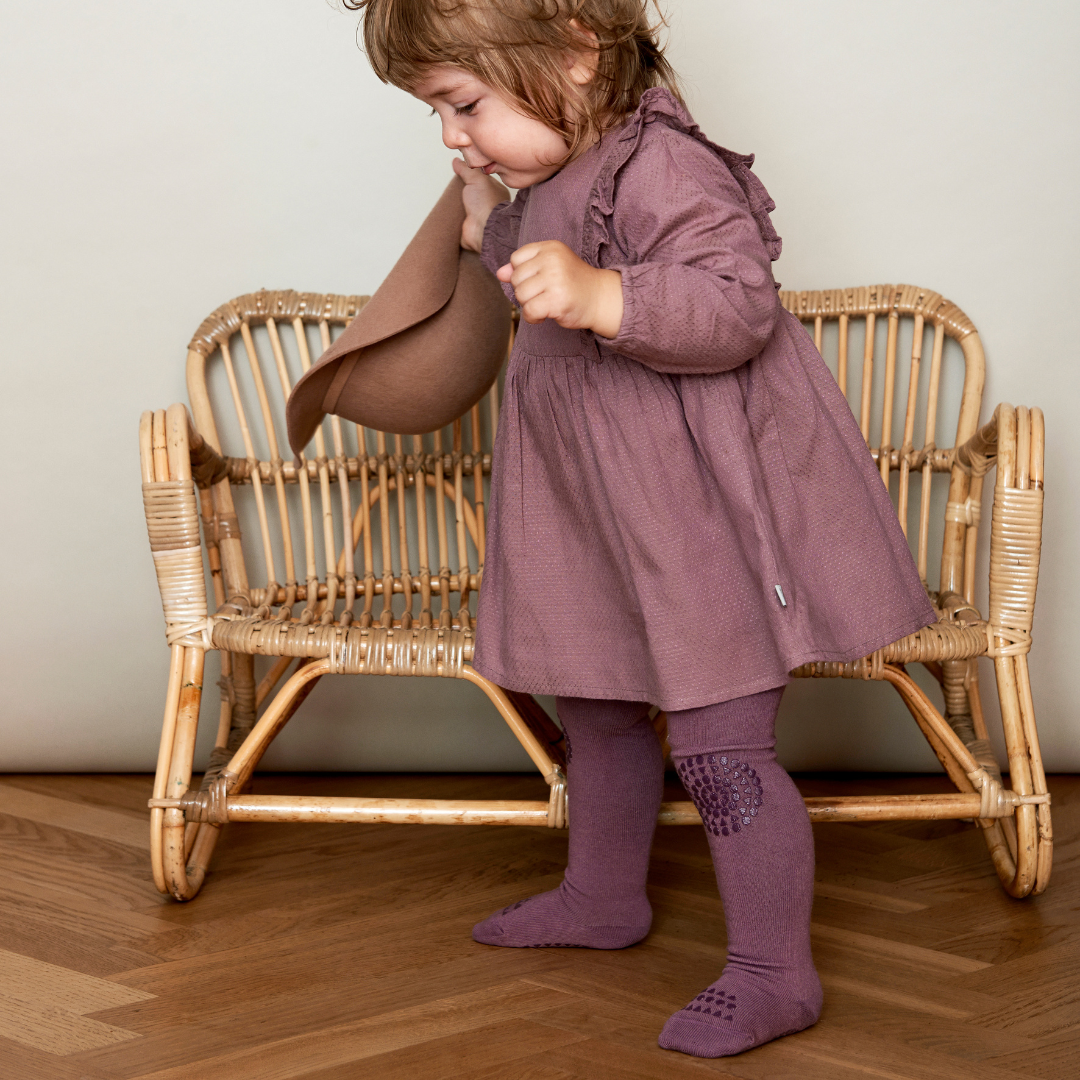 GoBabyGo csúszásgátlós harisnya szilva színben