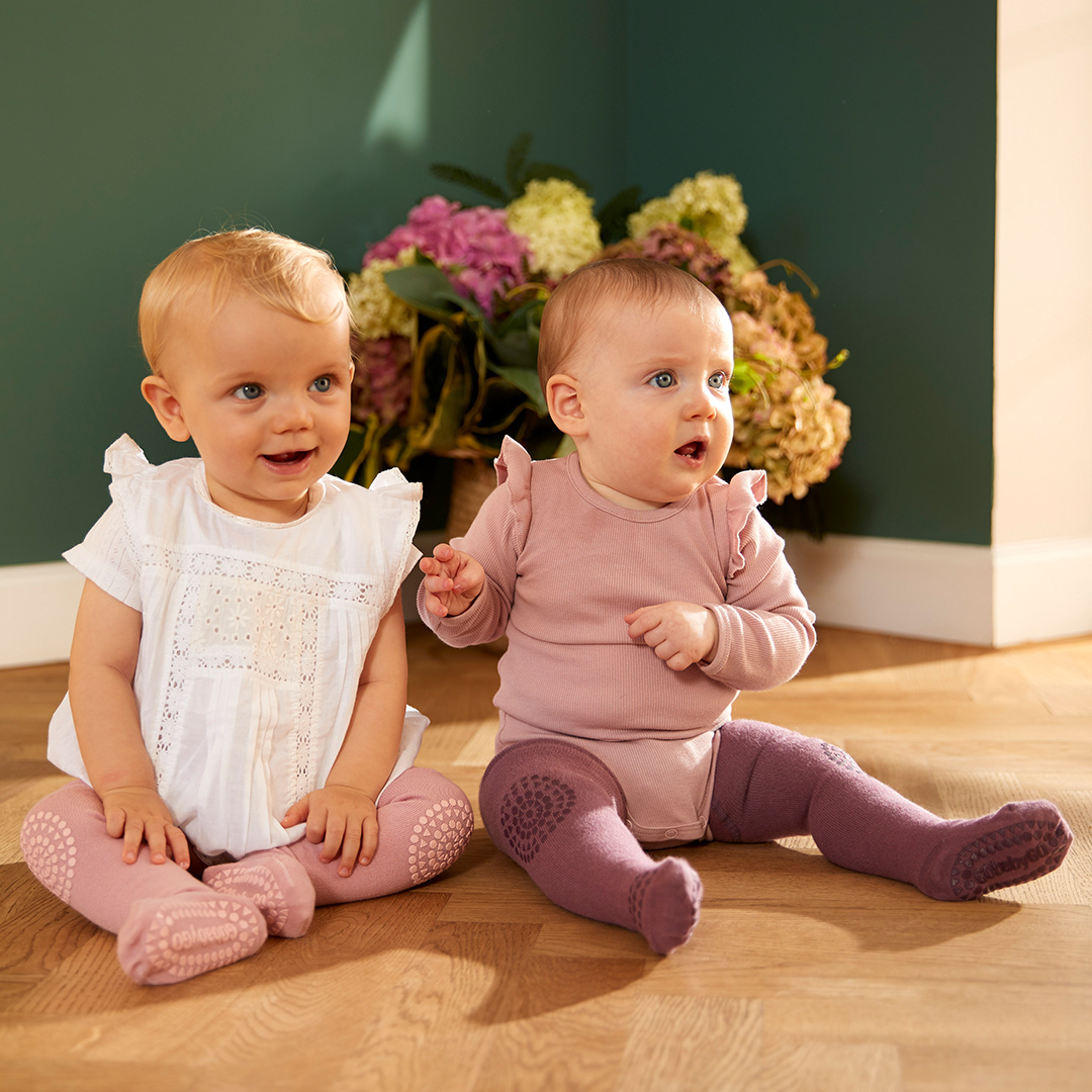 A babáknak és totyogóknak tervezett GoBabyGo harisnyanadrág talpán, lábfején és térdénél csúszásgátló gumi található, ami biztonságos tapadást biztosít a csúszósabb, sima felületeken.