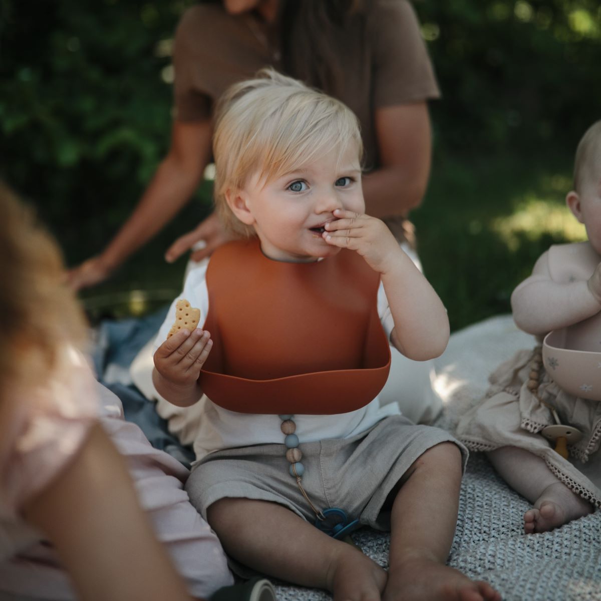A hajlékony, könnyen tisztítható és trendi Mushie előkék svéd dizájn alapján készülnek. Kialakításuknak köszönhetően könnyen feladhatók, többfokozatú zárrésszel biztosított a kényelmes viselet.