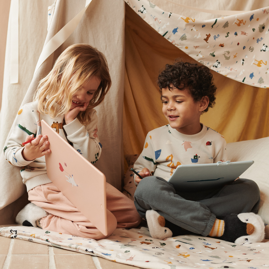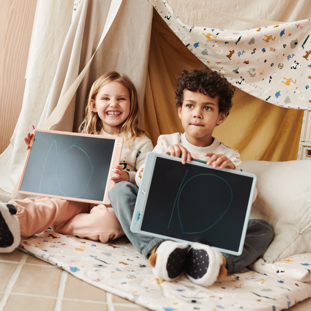 A Liewood Zora nagy varázs rajztábla, nyuszik mintával tökéletes eszköz a kicsik rajzkészségének fejlesztéséhez.