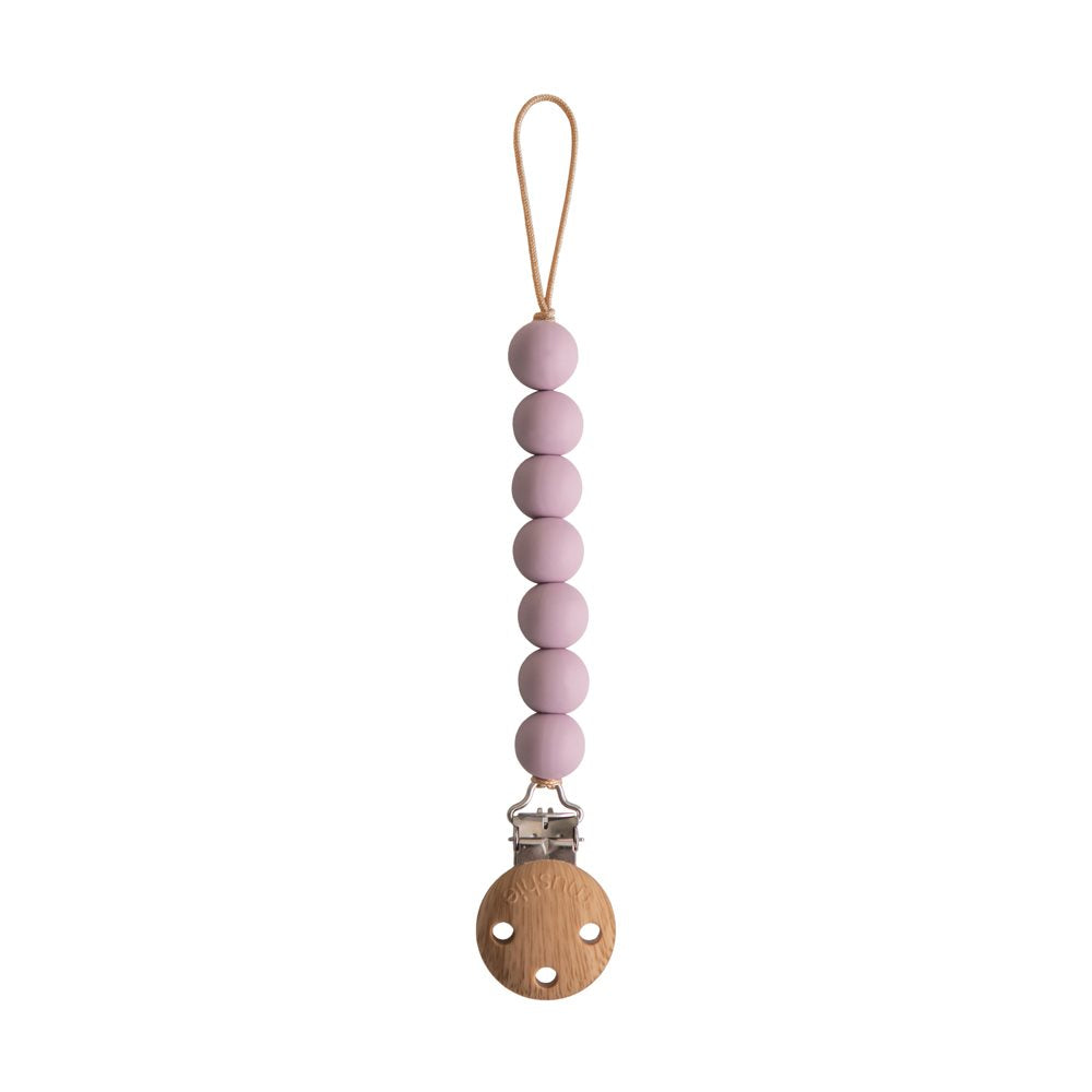 Amerikai anyukák és apukák kézzel készült terméke kezeletlen fából és 100% élelmiszeripari szilikonból készült gyöngyökből. A rögzítést segítő csat ólommentes.