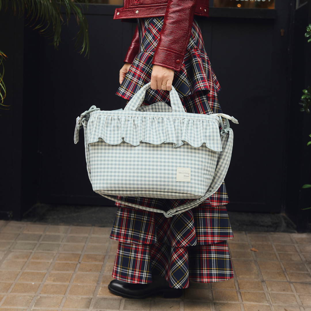 A Walking Mum Praliné pelenkázó táska romantikus fodros részletével és klasszikus Vichy-kockás mintájával játékos, mégis elegáns kiegészítő, ami nélkülözhetetlen társatok lesz, bármerre vigyen is az utatok. Ezzel a könnyű, strapabíró és nagy kapacitású táskával mindent magatokkal vihettek, amire csak szükségetek van. Nem is gondolnád, mennyi minden fér bele! Kialakítása csupa praktikum, így mindennek megvan a helye. A belső zsebek segítik a praktikus rendszerezést: van egy vízálló zsebe a nedves ruháknak, törlőkendőknek, egy thermo zsebe a cumisüvegnek, kulacsnak és plusz két belső zsebe, melyek tovább egyszerűsítik a pakolást.