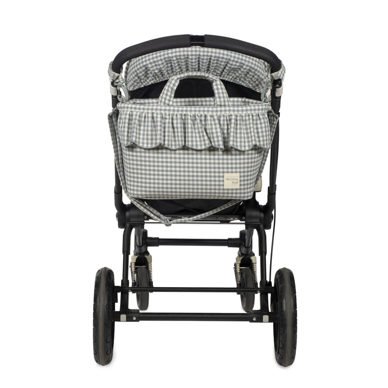 A táska rögzítése és hordozhatósága maximálisan testreszabható: minden pántja lecsatolható, így mindig az aktuális igényeitekhez alakíthatod. A két állítható, tépőzáras pánttal bármely babakocsira könnyedén rögzíthető, a hosszú vállpánttal pedig kényelmesen vállra vehető. Ha pedig épp nincs szükséged a pántokra, a praktikus karabinerek segítségével egyetlen mozdulattal leveheted őket, és elegáns, fodros kézitáskaként használhatod.