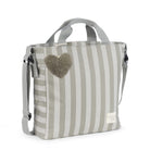 Modern, multifunkcionális csíkos pelenkázó táska oliva színben hozzá illő pelenkázó lappal.