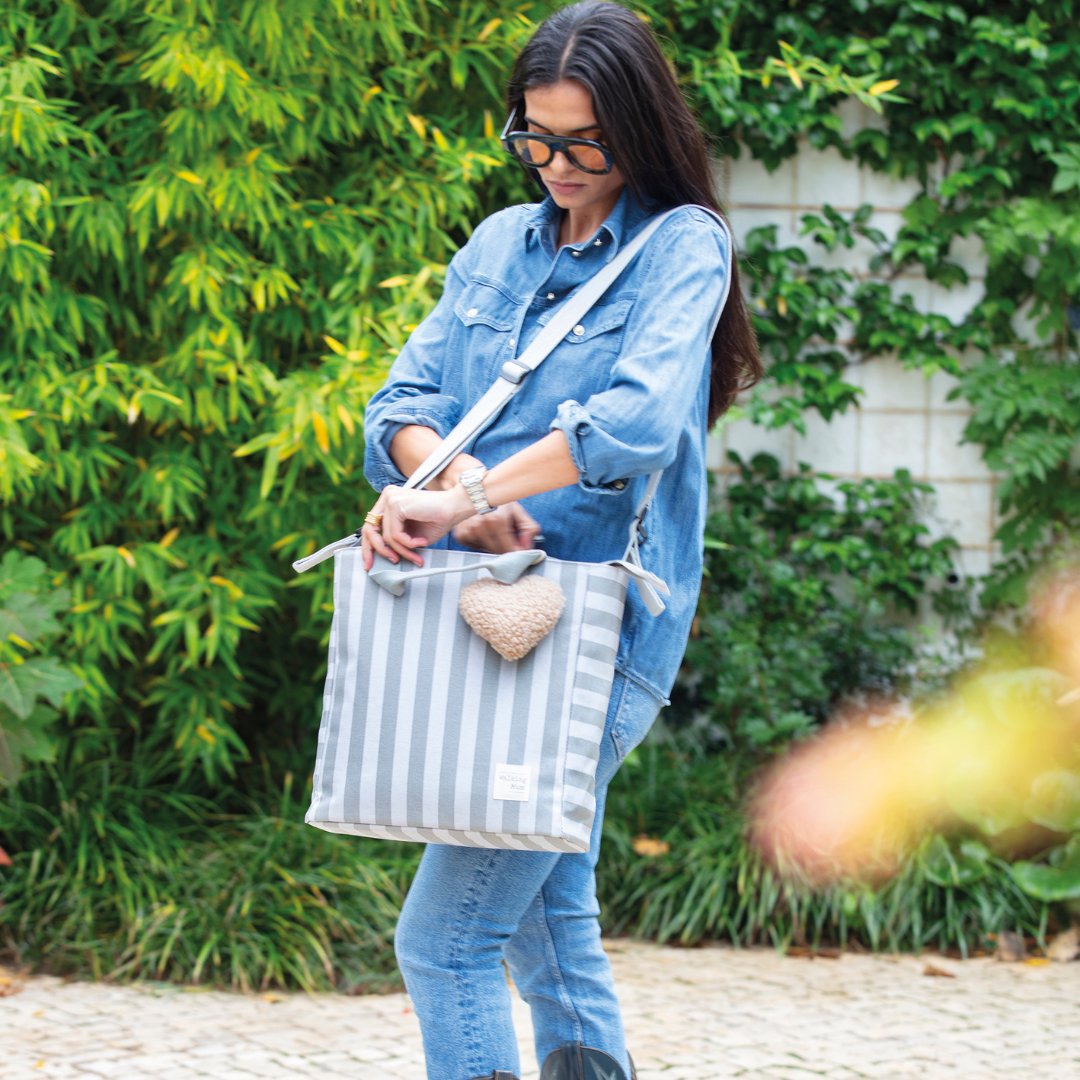 Bármely babakocsira könnyen rögzíthető, illetve két rövidebb fülével könnyen kézbe veheted, hosszú fülének köszönhetően vállra is veheted.